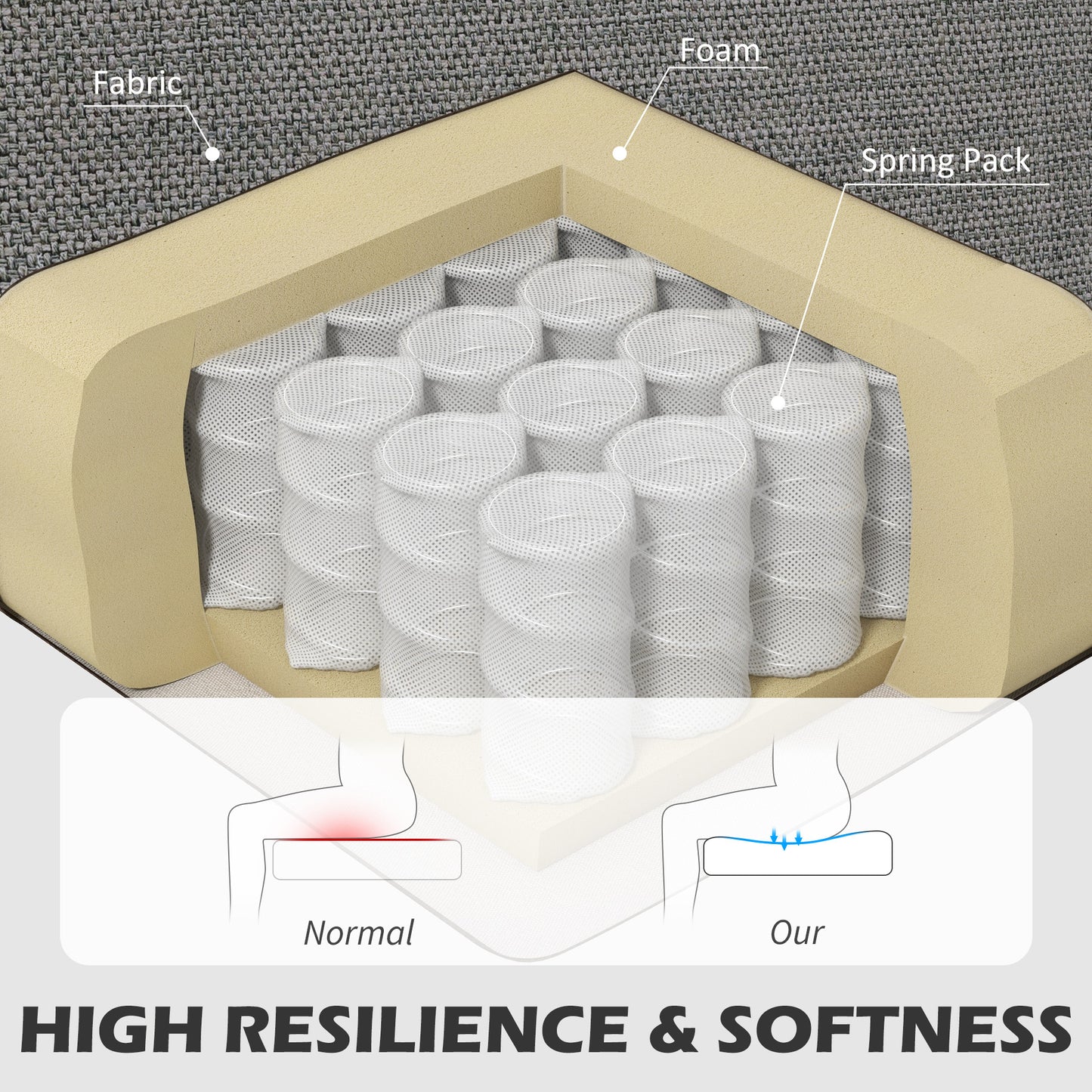 • High-density foam with stretchy pocket spring, S spring and elastic band ensures comfortable, long-lasting seat support