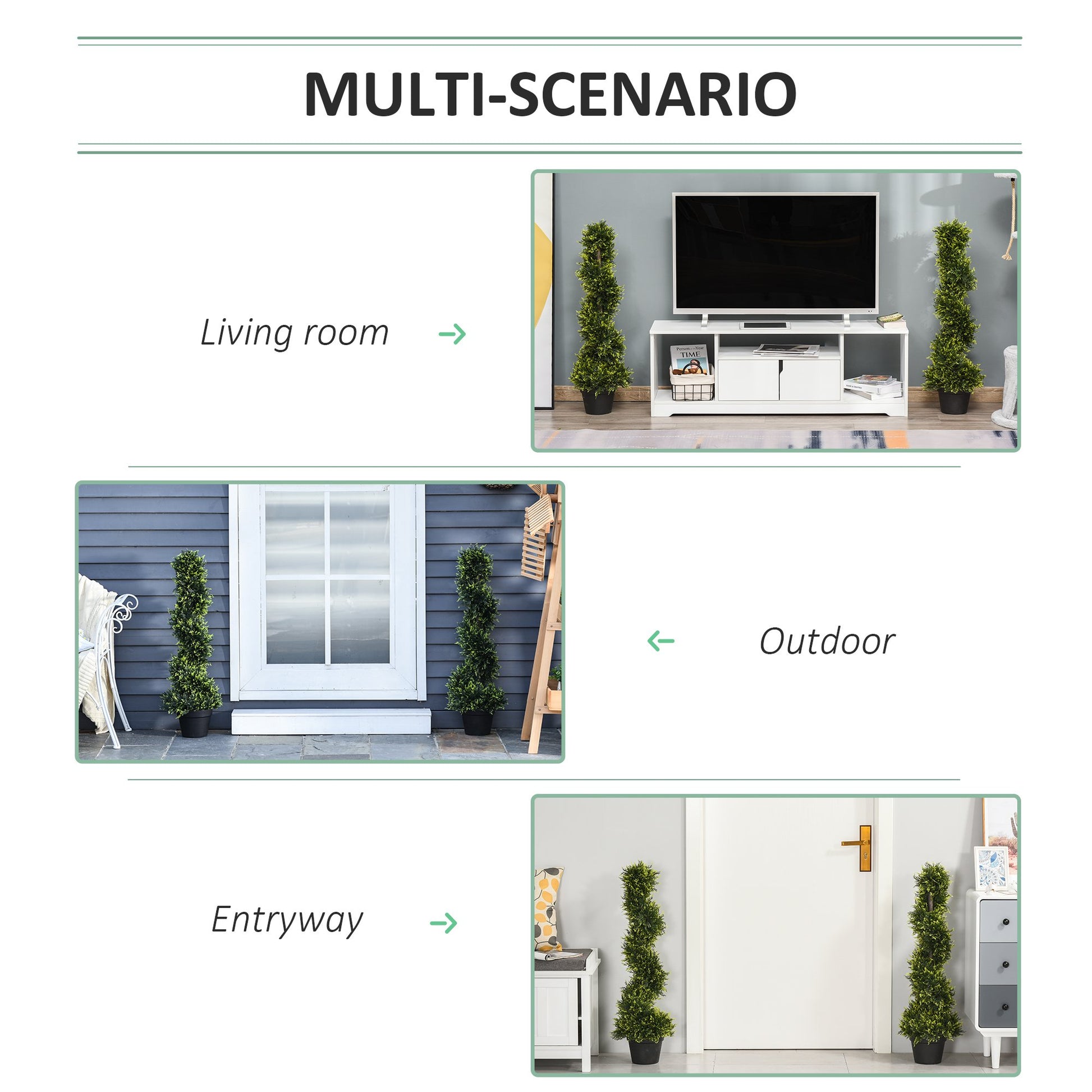 Bringing beautiful greenery into your home doesn't get much easier than this. These 2 potted outdoor plants will liven up your space without maintenance. Come in a set of two, so you can create a matching look in the home and outdoors. Made from plastic for long-time use, the premium quality holds a realistic colour. The fake tree is tall, and the spiral shape adds to the beauty. Our indoor plants both come with a pot, so you have everything you need in the package.