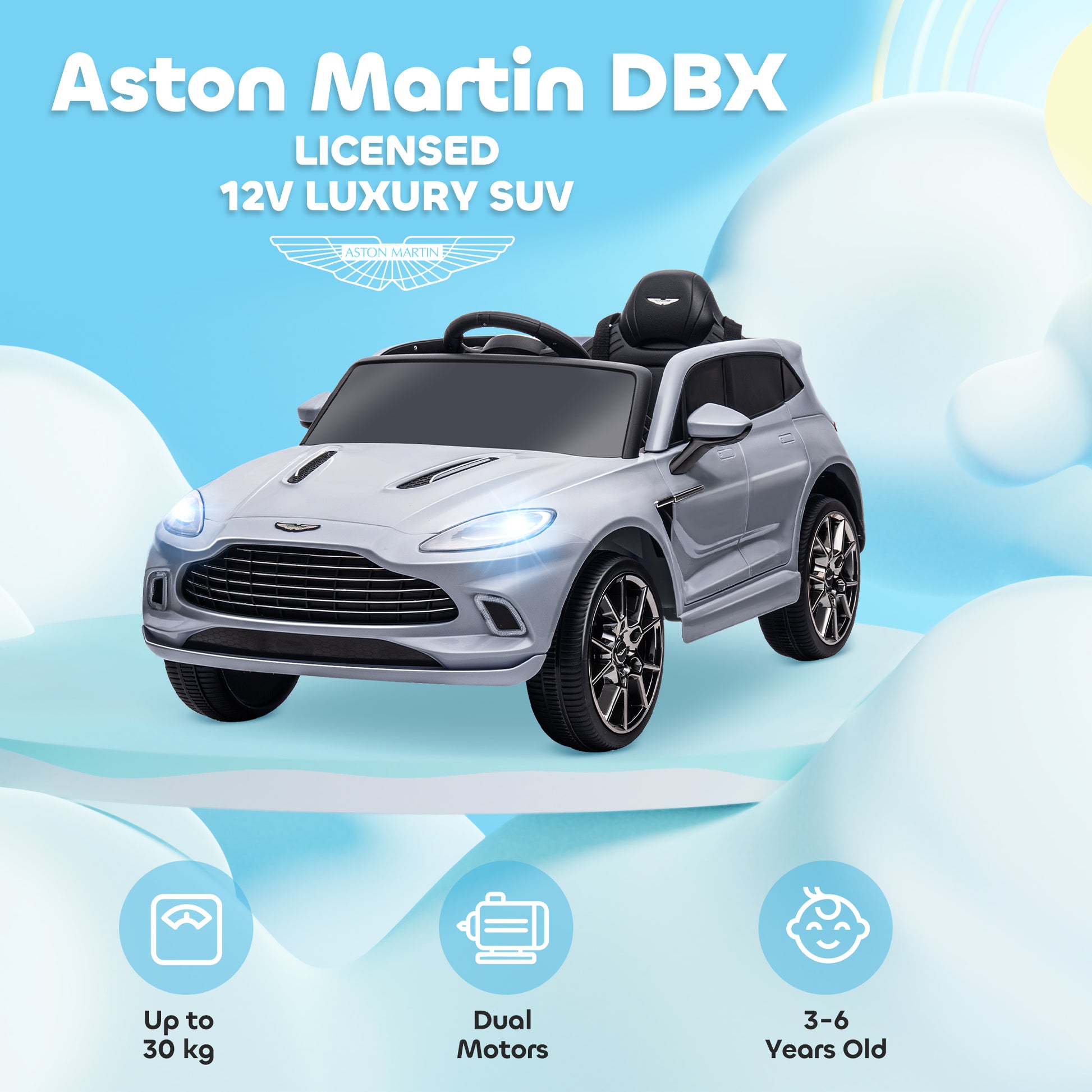 Aston Martin DBX Licensed 12V Kids Ride on Car, Battery Powered Kids Electric Car with Remote Control, 4 Suspension Wheels, LED Lights Music Horn, Slow Start, for Ages 3-6, Grey