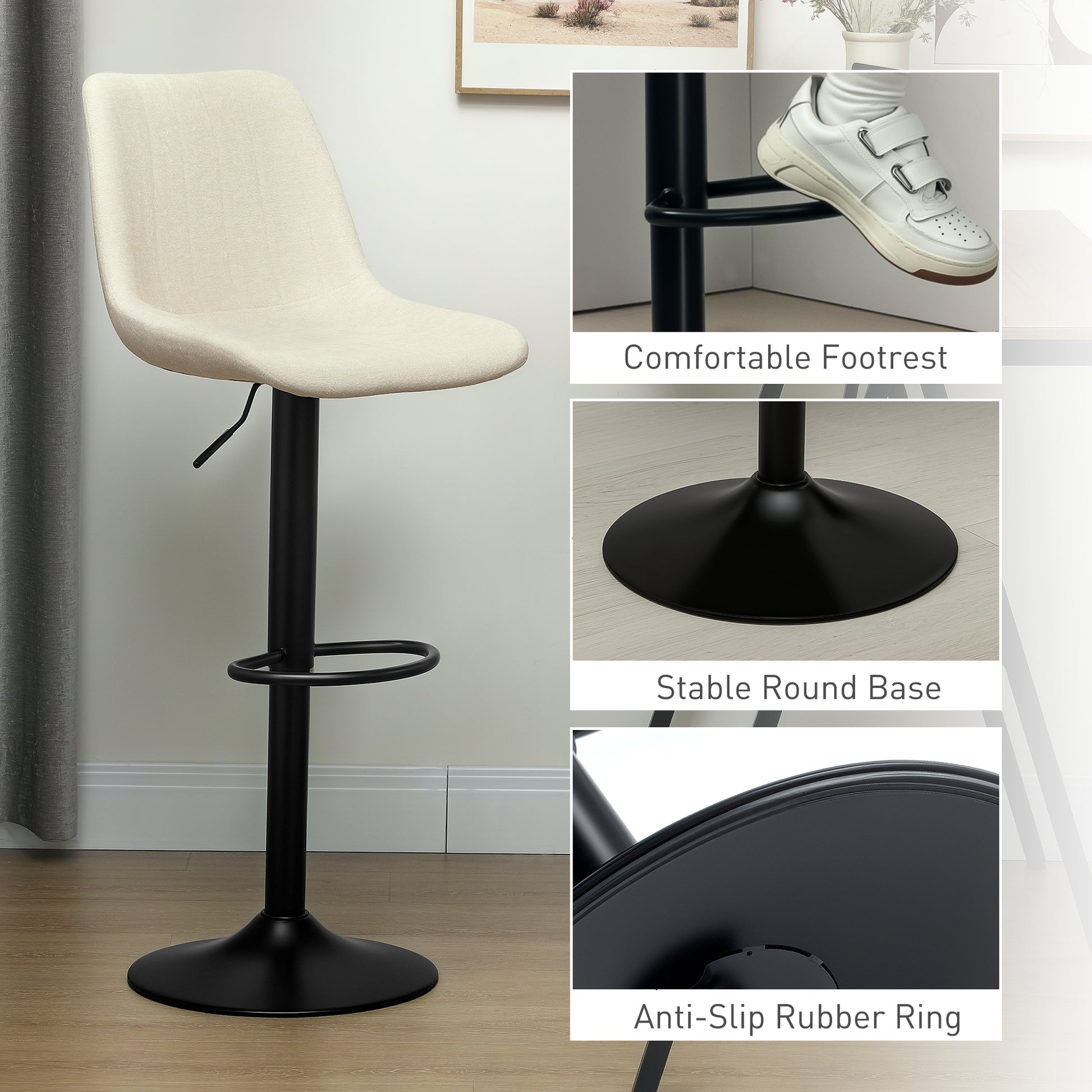 Bar Stools Set of 2 Adjustable Swivel Bar Chairs with Backrest Beige