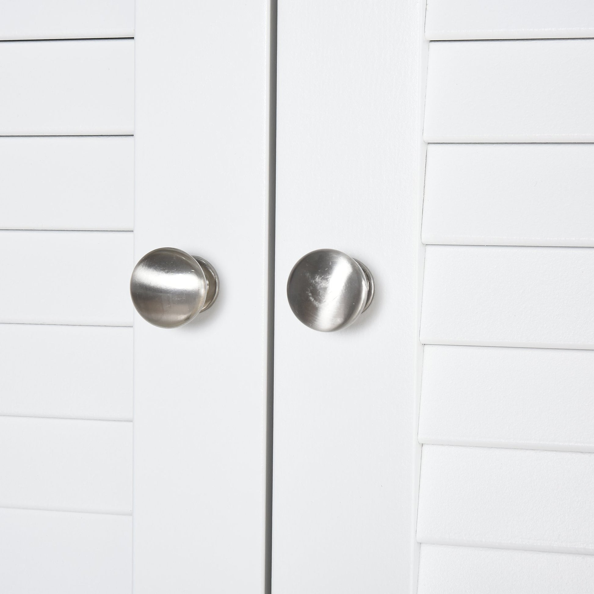 Give your bathroom storage some retro zeal with this tall cabinet from HOMCOM. Using a blend of MDF and particle board for everyday reliability, it is crafted into a slimline design which is great for bathrooms with little space. It features a large top cabinet, a middle compartment and a bottom cabinet for plenty of open and concealed storage, with adjustable shelves in the cabinet for organisation. A shutter design on the doors gives a classic look and allows air flow whilst closed, with metal knob handles for a polished look. It is finished with abase for extra balance.