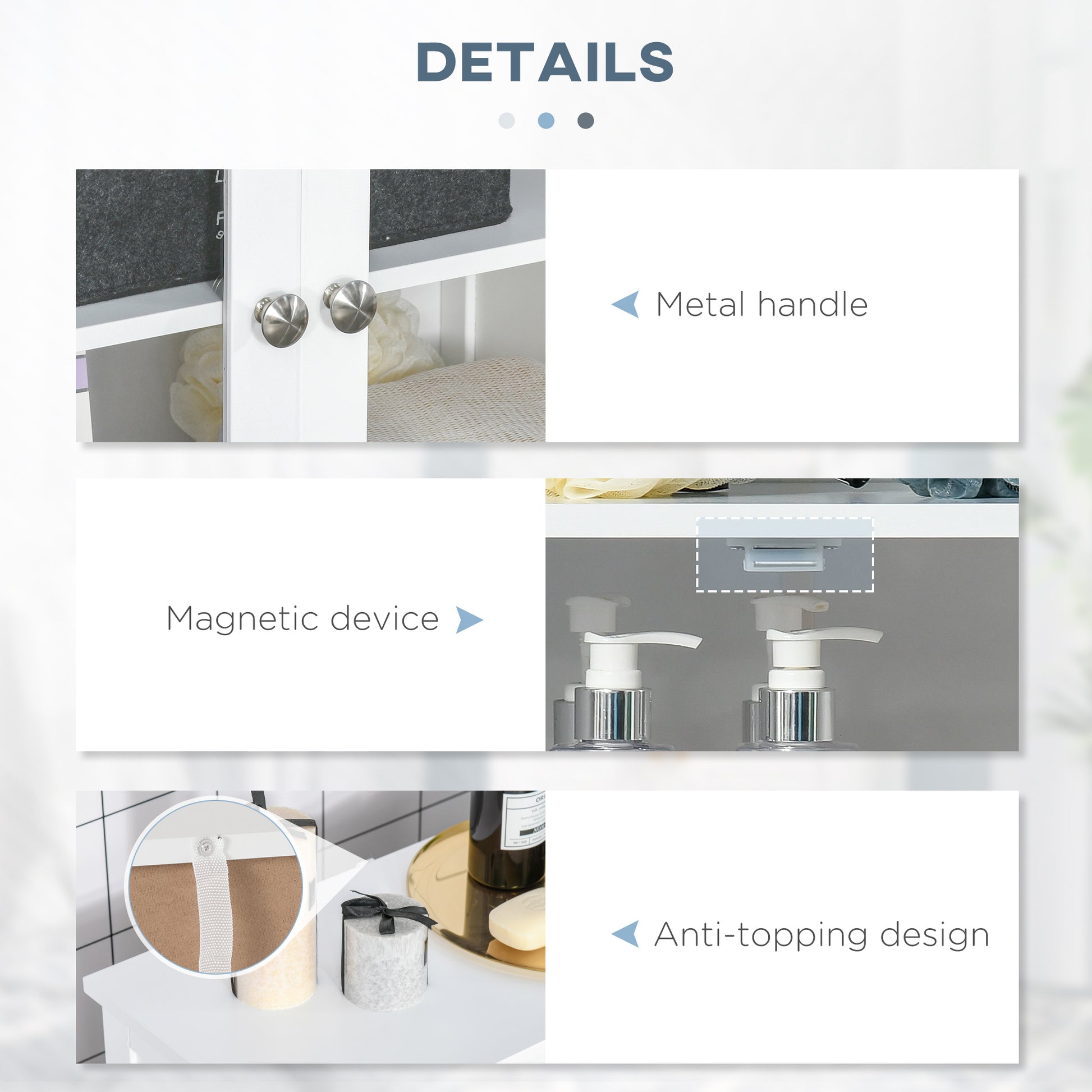 Expand storage in your bathroom with this tall cabinet from kleankin. It's crafted from durable MDF, with a coat of protective paint so it's suitable for moisture-filled environments. Features a concealed bottom storage space and a top area, which comes with two tempered glass doors to see inside easily. It's finished with a small base, elevating the bottom to help prevent water damage. A classic piece every bathroom requires.Specifications