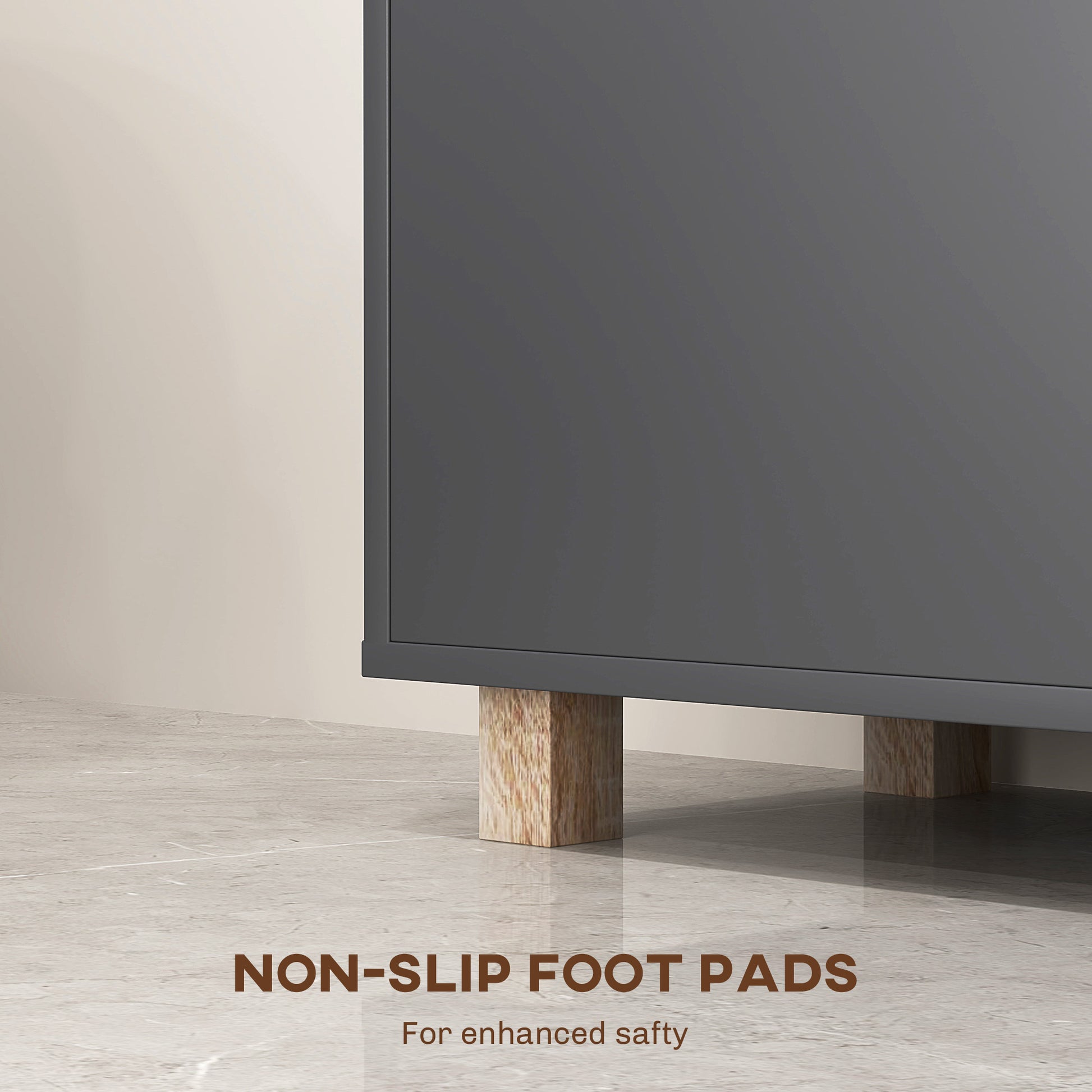 Discover the stylish bathroom cupboard, a flawless blend of modern design and practicality. Its dual storage compartments and cabinets offer lots of space, while the chic grey finish and natural wood grain detail add a contemporary touch to any bathroom. Enjoy the convenience and enhanced stability provided by non-slip foot pads. Excellent for organising all your bathroom essentials!Specifications