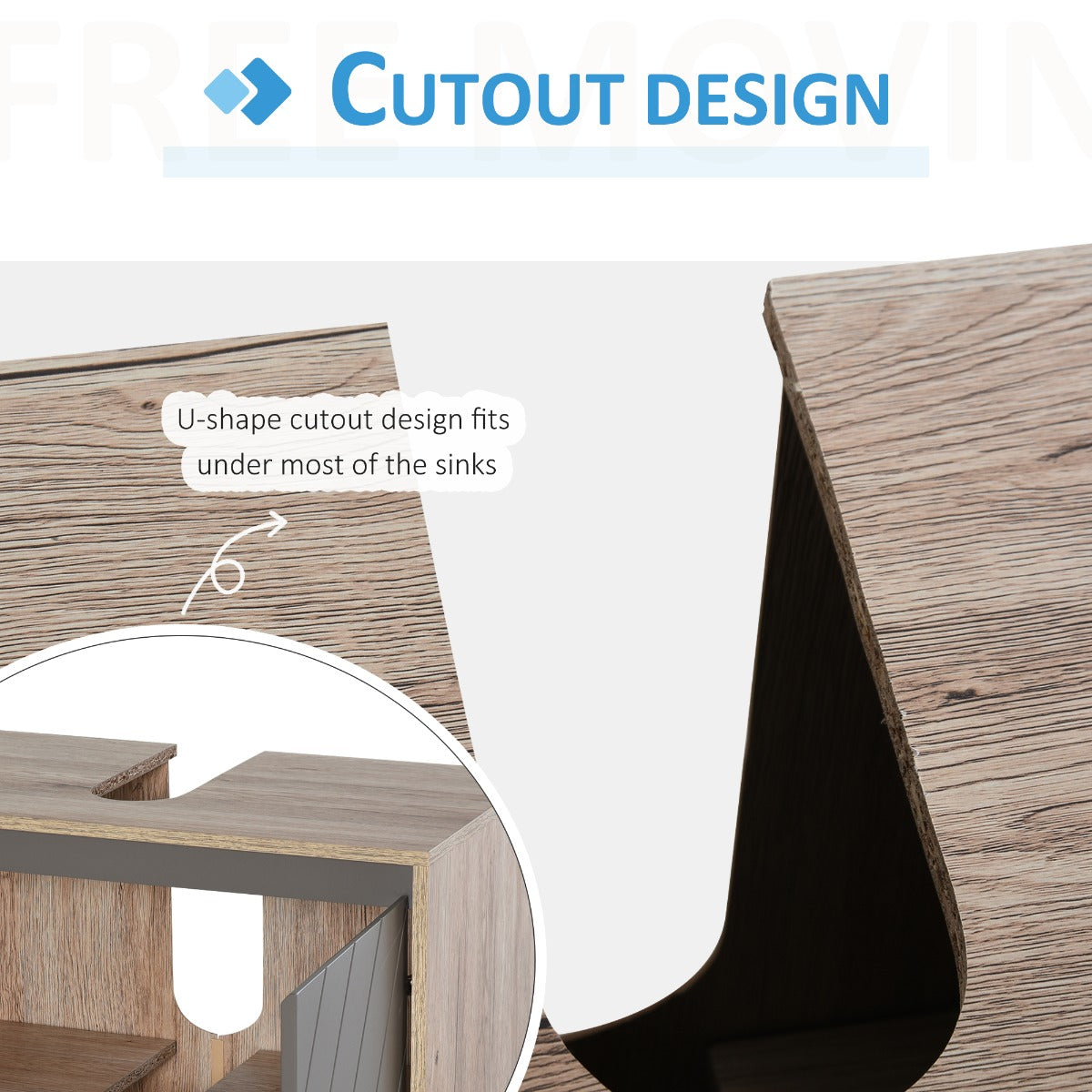 Under Sink Storage Cabinet Floor Standing Cupboard w/ Adjustable Shelf Bathroom Cabinet 2 Doors Versatile Style Grey