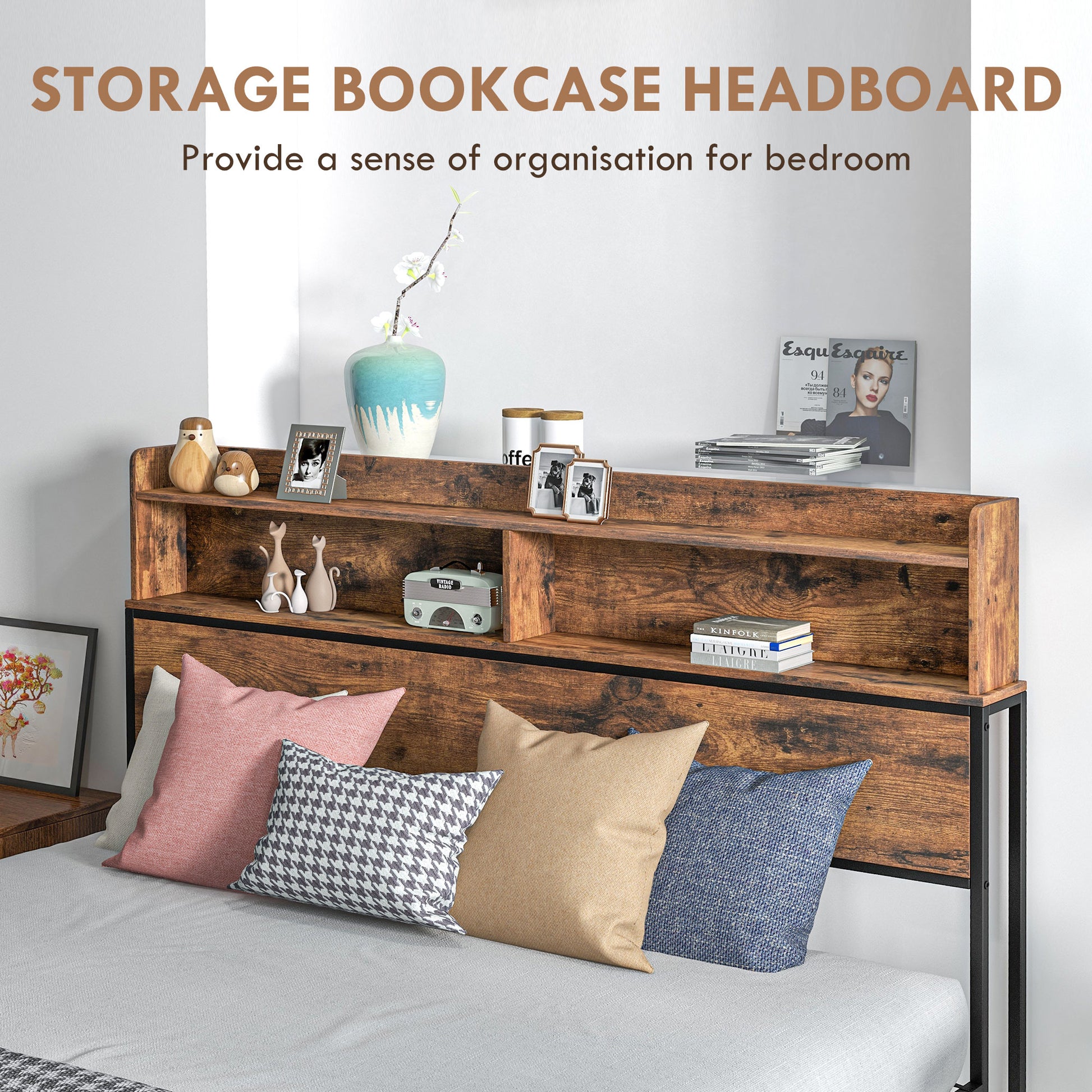 A retro touch for your dream times - this HOMCOM metal bed frame. A steel frame means you are supported, with 26.5cm underbed clearance giving discreet room for keeping items stored. It comes with a two-compartment headboard - room for keeping small essentials close to you. The king size makes it very spacious - plenty of room for sleeping and relaxing. With its industrial design, it's perfect for plenty of home styles!