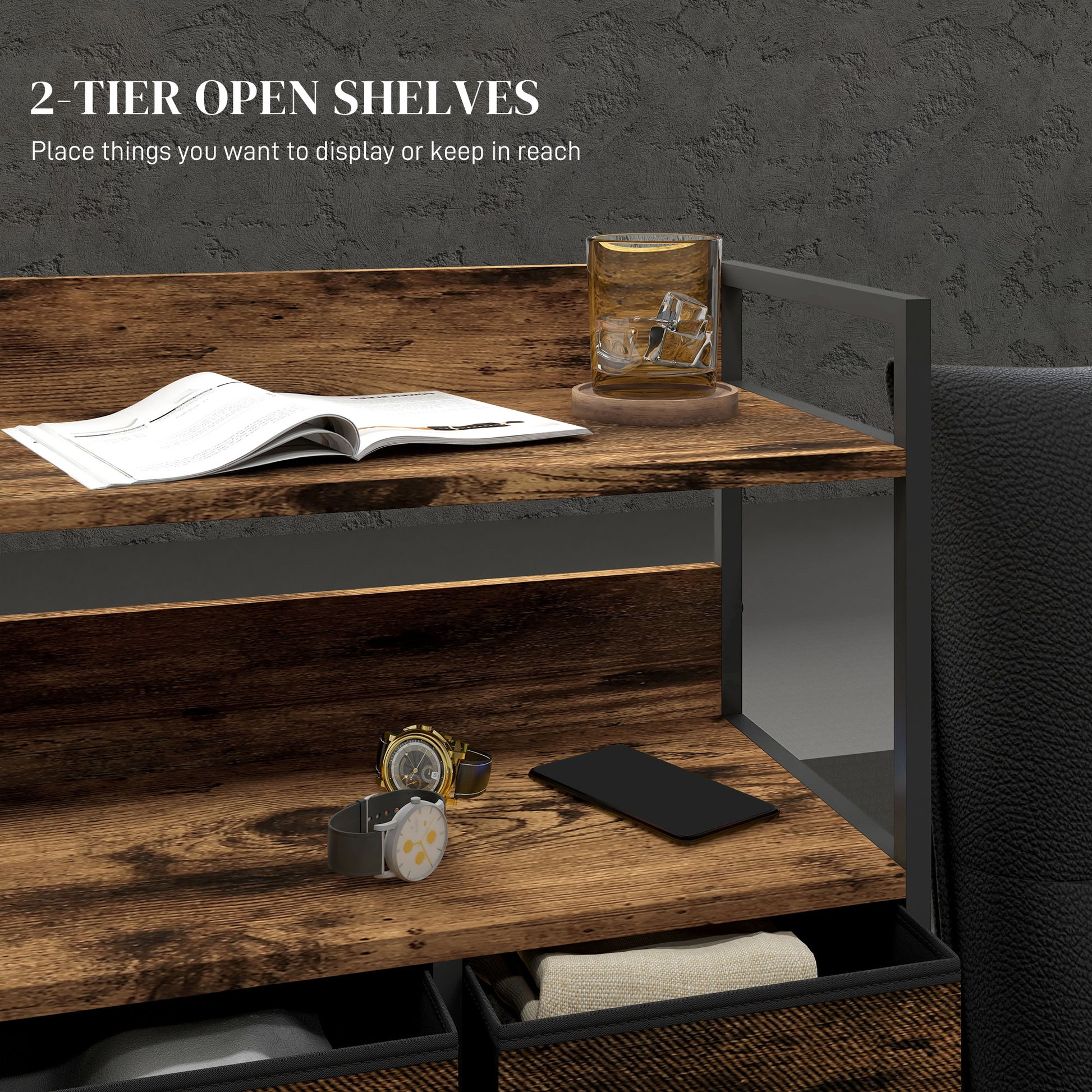 - Weight Capacity: 35kg (overall), 15kg (top), 10kg (middle shelf), 3kg (each drawer)