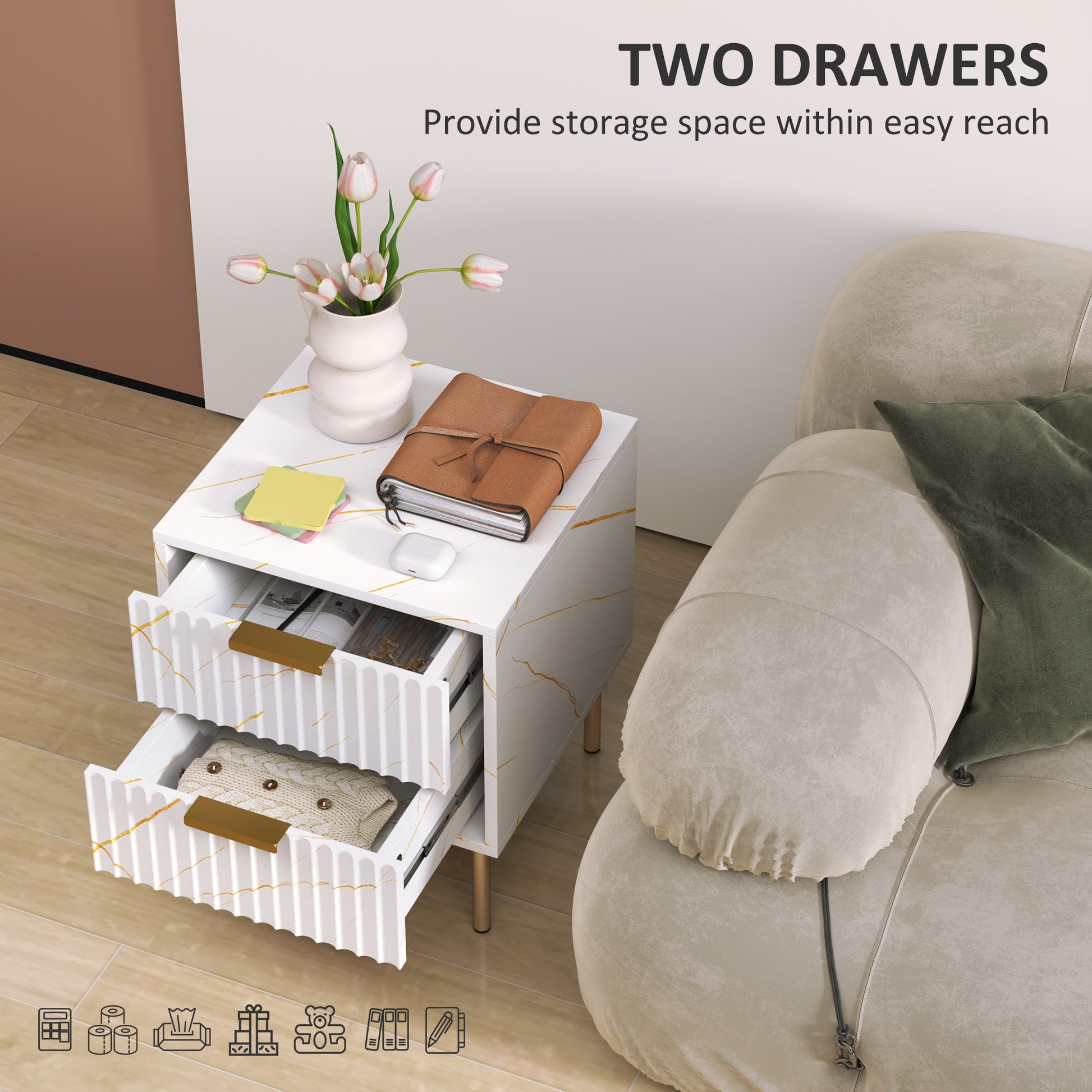 Thanks to the marble-inspired design of this bedside table, this is an elegant touch to your bedrooms and beyond. The two drawers offer plenty of space for keeping essentials close to you. Doubles as up as an end table throughout the home.Specifications