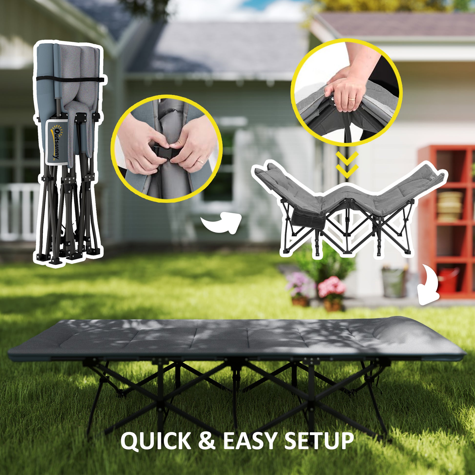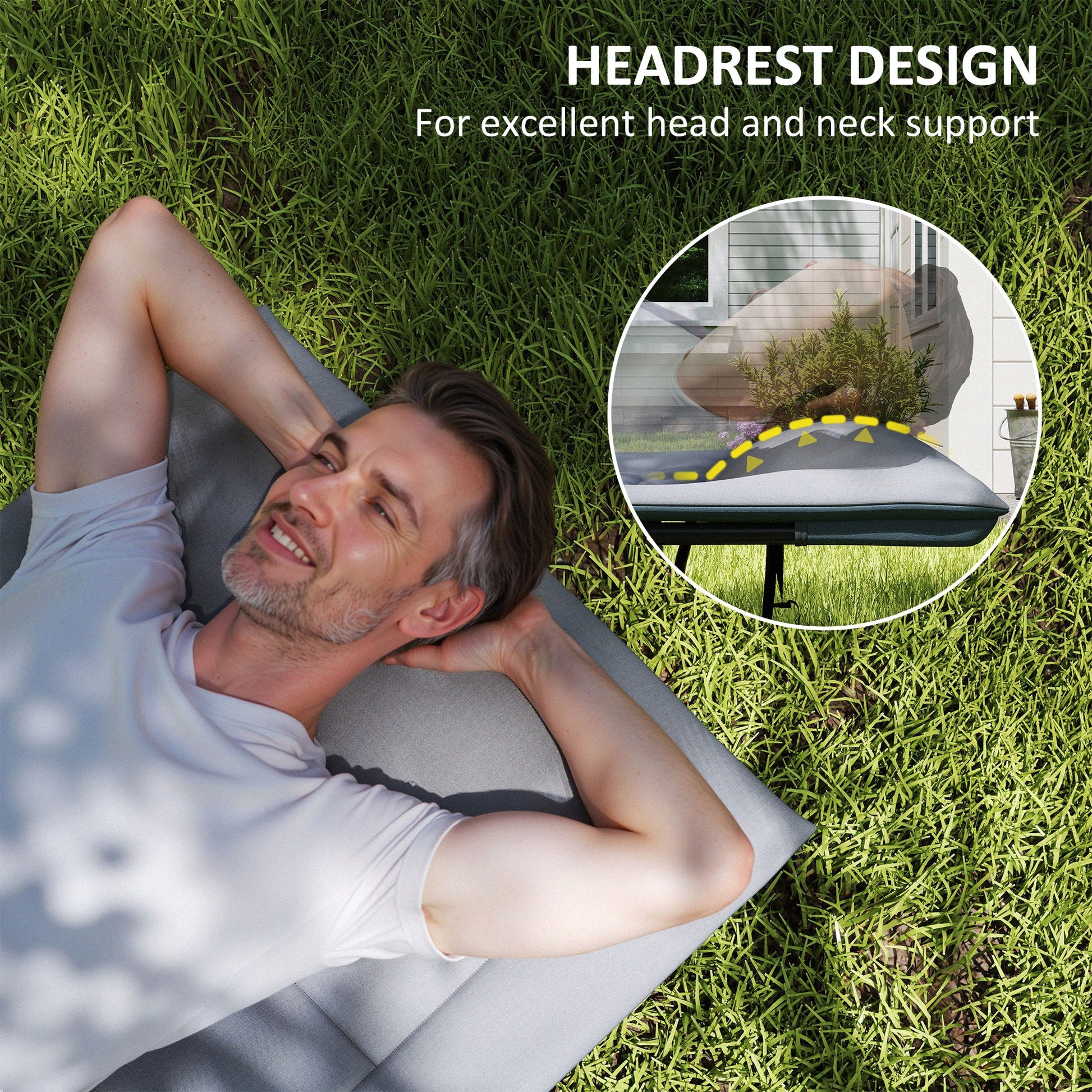 Camping Bed for Adults with Cushion, Headrest, Side Pocket, Grey