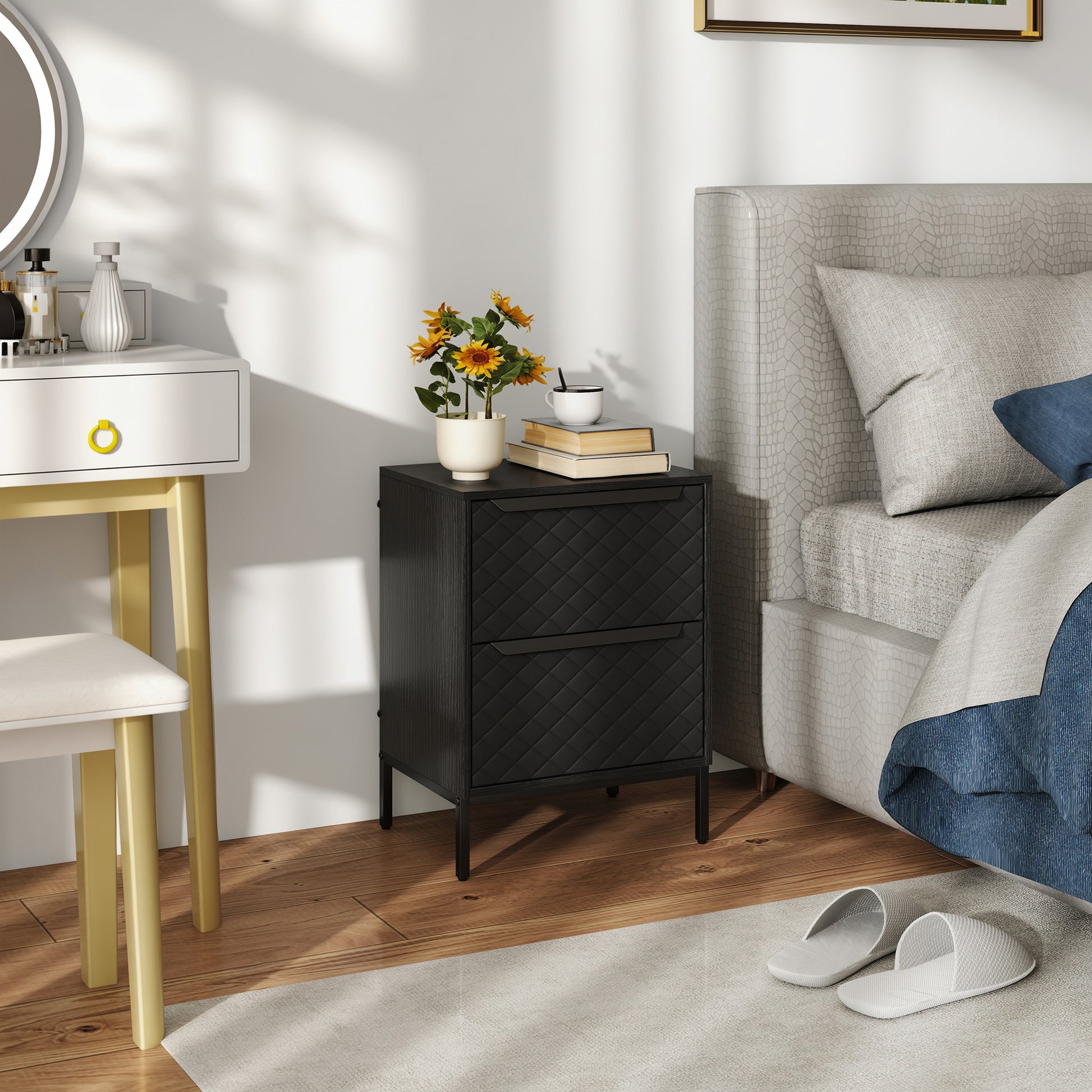 Easy, simple storage with this fabric chest of drawers. With two same drawers, it's easy to sort everything from socks to underwear. The wood-effect MDF frame and diamond-stitched drawer fronts create a timeless modern look to suit any home decor. An MDF frame with X-bar keeps this bedroom dresser tough and stable. Complete with adjustable feet for balance even on unsteady grounds.Specifications