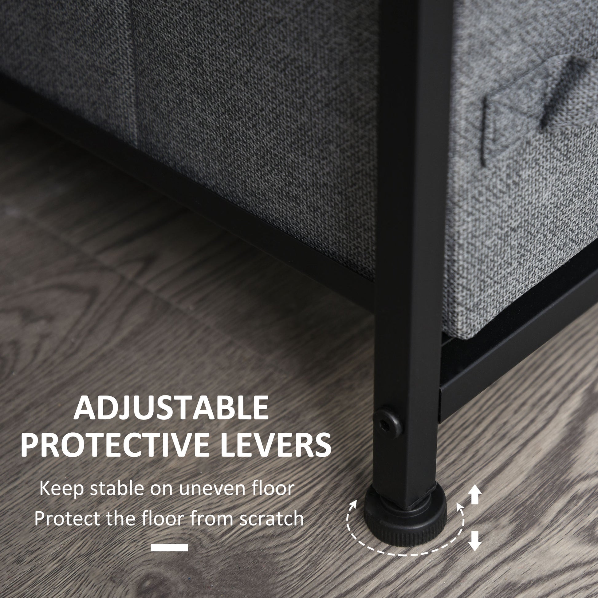 The bedroom chest of drawers is the great solution for keeping your bedroom organized. Built with a stable steel frame and engineered wood top, it provides reliable display space. With four small drawers and three large ones, it offers generous storage for clothes and other essentials. The adjustable feet ensure stability, making it suitable as a bedroom dresser, bedroom unit, or stylish fabric drawer for any modern space.Specifications