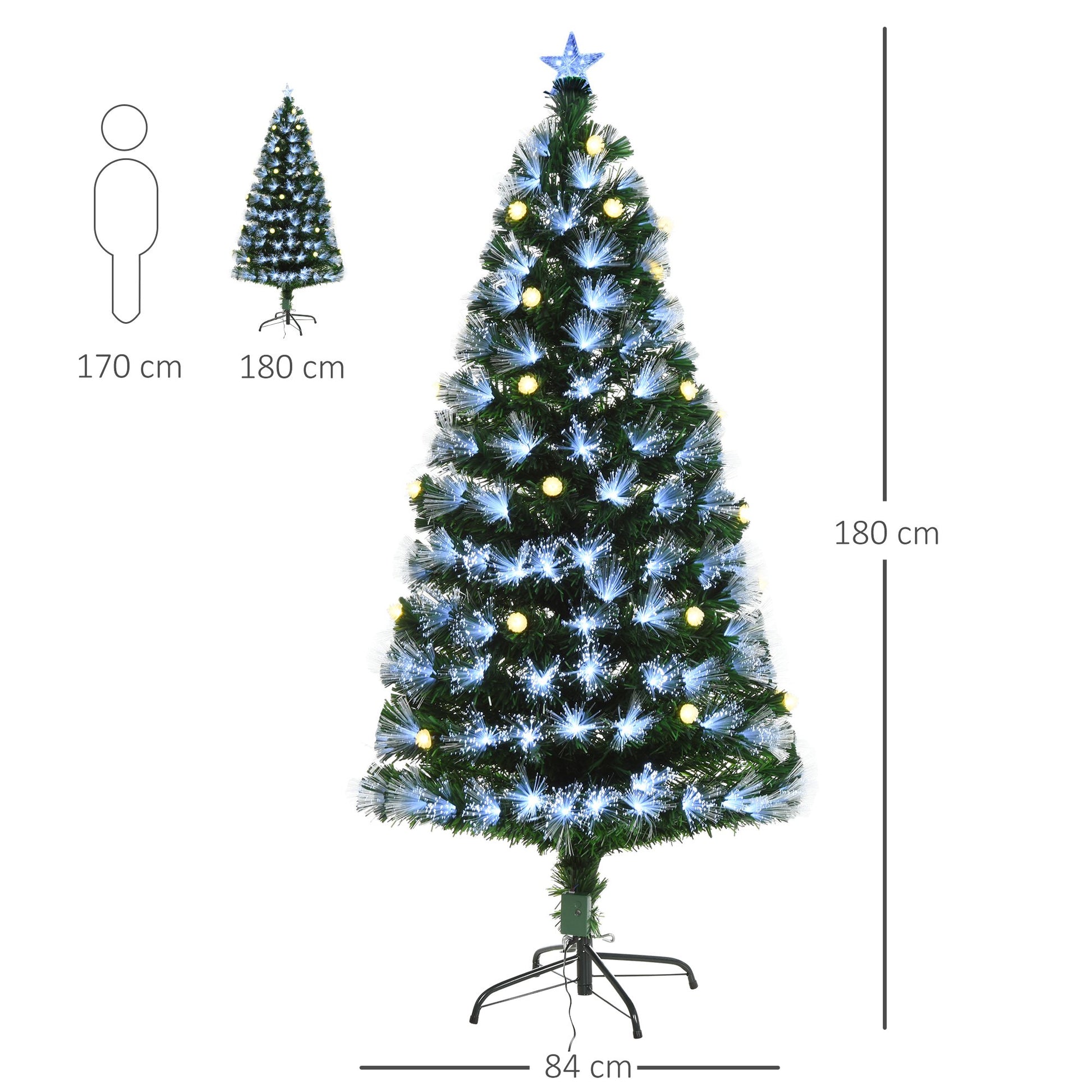 Light up your home with pure magic this season thanks to this 6FT Christmas tree from HOMCOM. Its artificial design will last you for several years, and it is safe placed in home with children and pets. The reslistic Christmas tree is made with fibre-optic LED lights, using a mix of warm white and small balls for a bright and beautiful look. The large amount of branches is able to support your hanging decorations and tinsel for a customized look. A beautiful way to create an extra-special feeling in your home.
