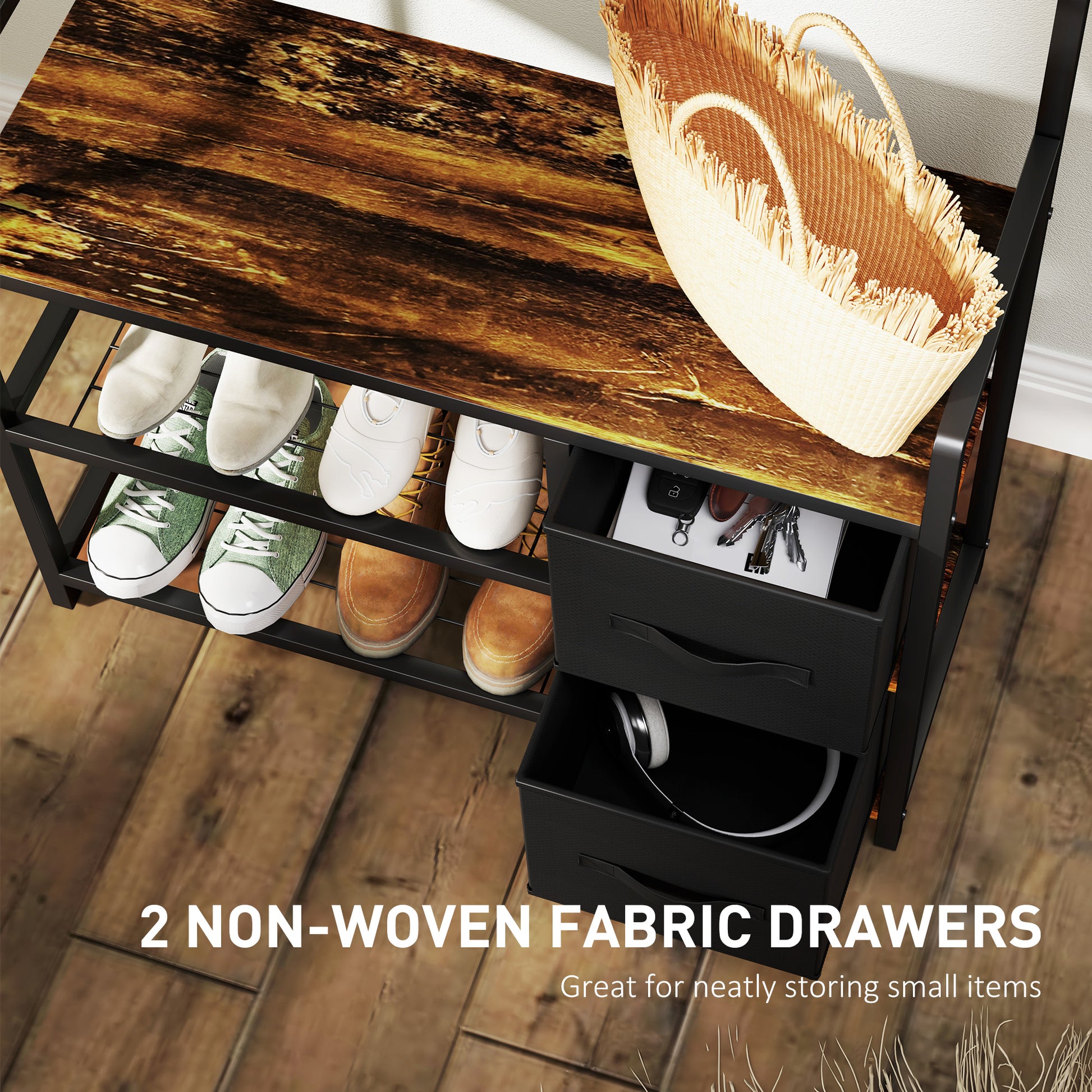 Coat Rack with Drawer, 4-in-1 Hall Tree with Coat Stand, Rustic Brown