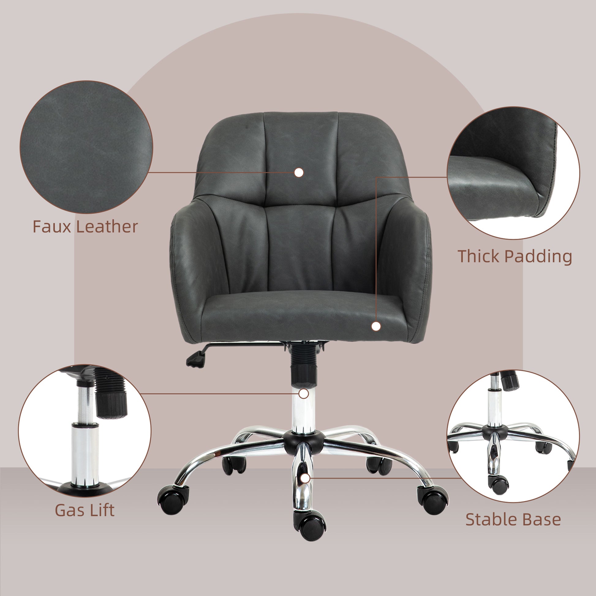 Computer Desk Chair with PU Leather, Swivel Wheels, Grey