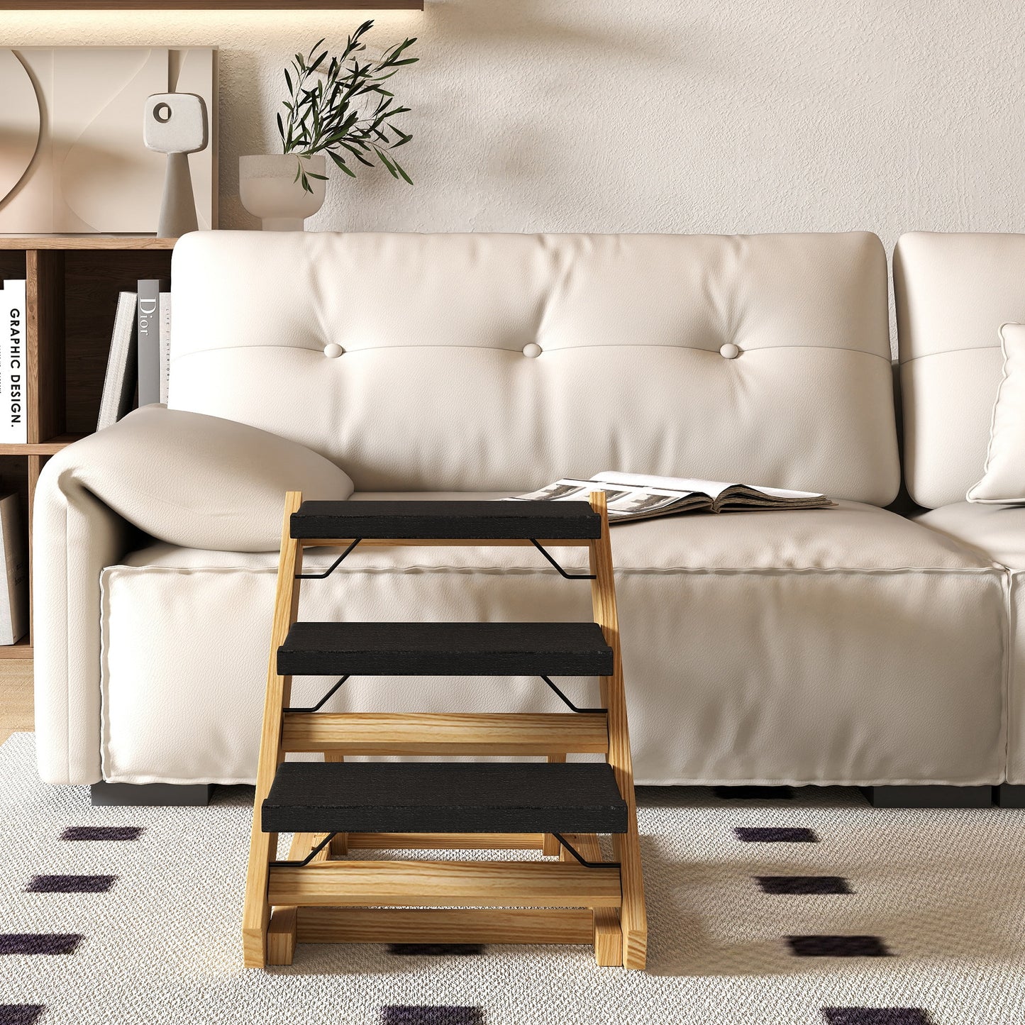Discover the versatility of Dog Steps, a clever 2-in-1 design that serves as both cat steps and a ramp. Crafted from pine wood, it supports your four-legged friends safely, making it suitable for older or injured pets. With adjustable heights, the cat stairs easily accommodate beds, sofas and other furniture, ensuring comfy access for your furry friend. Plus, it's foldable for easy storage!Specifications
