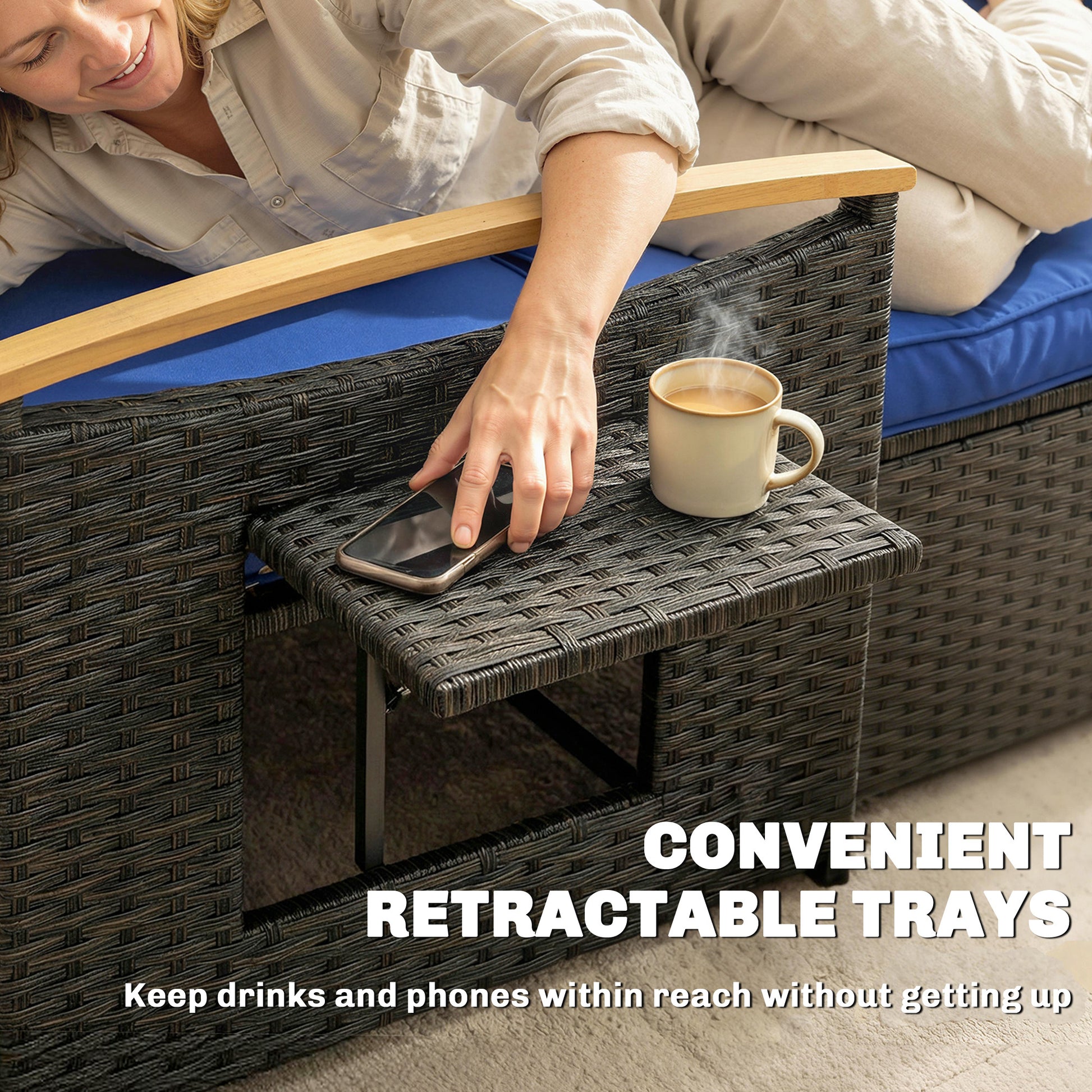Does your outdoor space feel cluttered and inflexible, preventing true relaxation? Picture this: a 3-in-1 convertible rattan garden daybed that transforms from a loveseat into a daybed for lounging. The ottoman conceals storage for cushions and pillows, while the five-level adjustable backrest provides personalized comfort. This sofa set brings effortless convenience and adaptability to your patio, creating a serene and organised retreat for you to enjoy anytime.Specifications