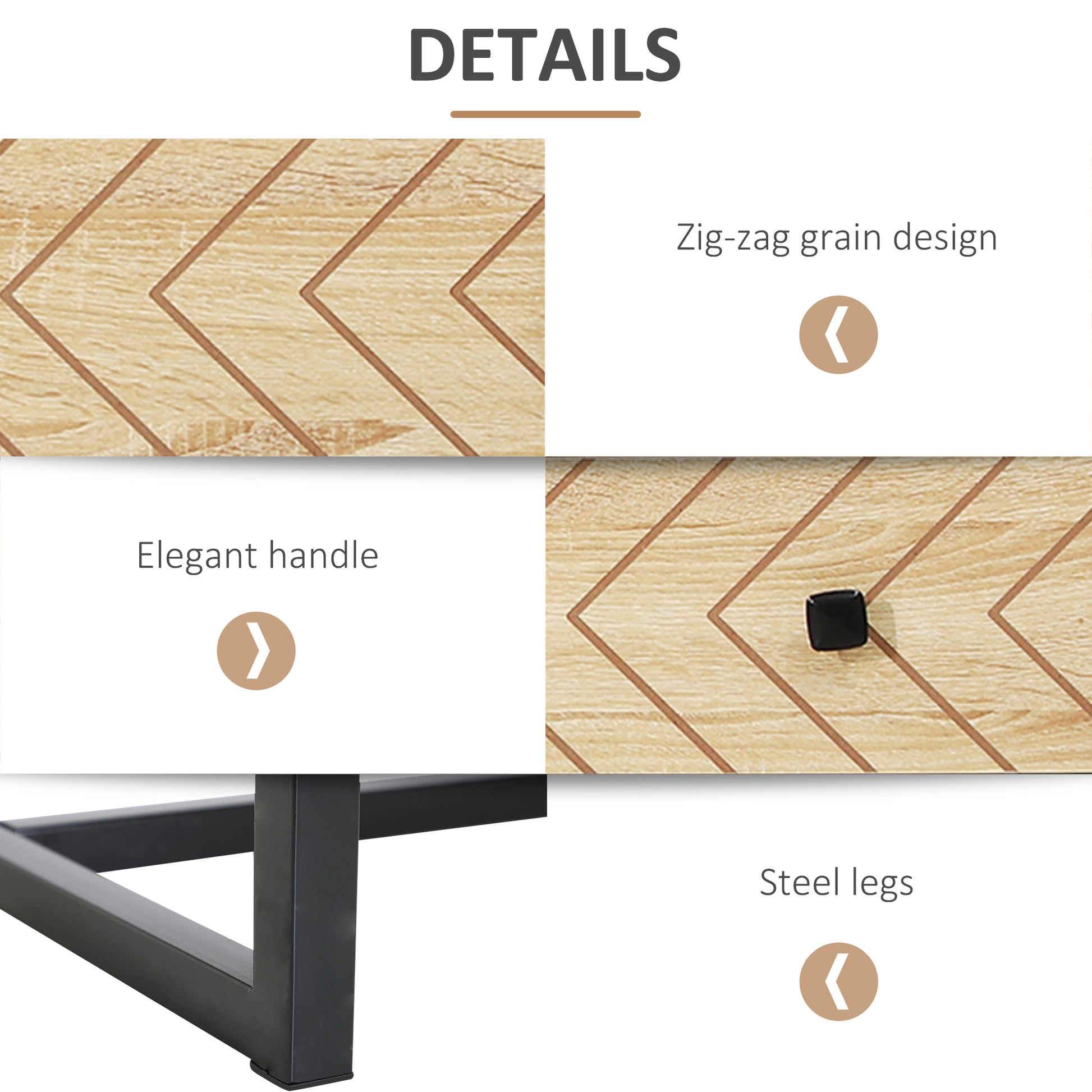6 Drawer Chest Sideboard Cabinet Storage Unit Hallway Bedroom Livingroom Zig Zag Design w/ Black Metal Handles Anti Tip 71x120cm