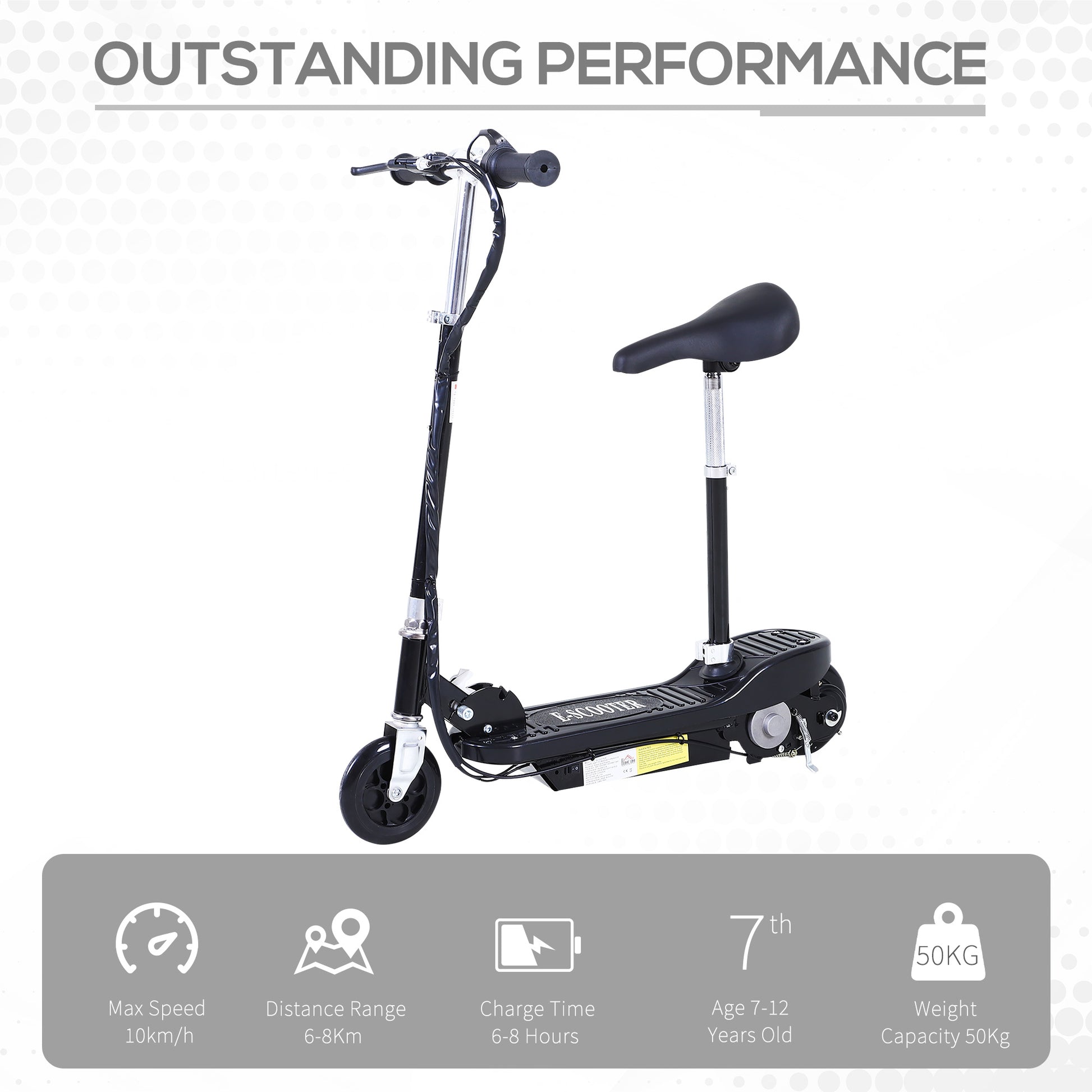 HOMCOM designed this powered scooter for riding around in style and comfort. The metal frame construction provides added durability and minimum maintenance. The charge holds up to 6-8Hrs while offering a distance mileage up to 6-8km in 1 charge. The folding scooter makes it easy to store or carry when not in use.; Warning: It is illegal to ride powered scooters on public roads, pavements, or cycle paths. They are intended only for use on private land with the owner's permission.