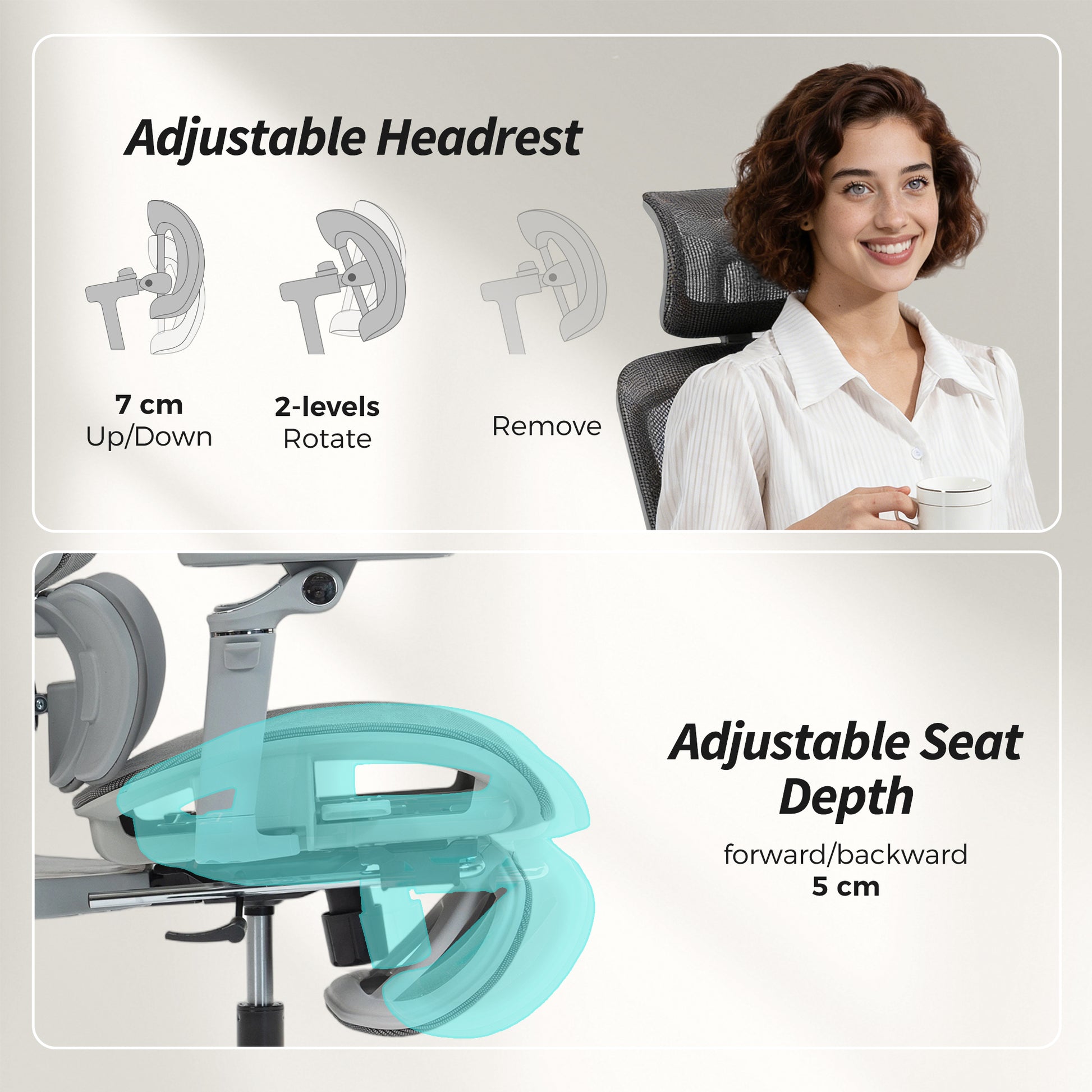 - Seat Depth Adjustment: 5 cm
