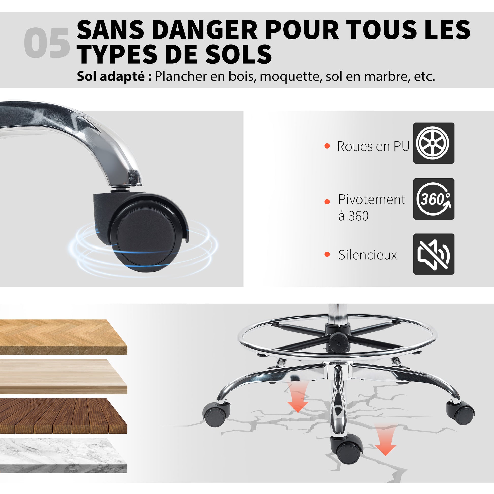 Ergonomic Tall Office Chair, 360 Degree Swivel Task Stool, Black