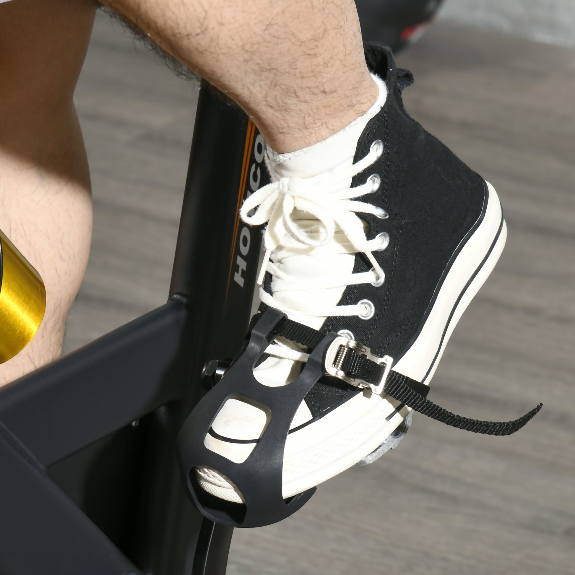 - Secure footing with adjustable caged pedals