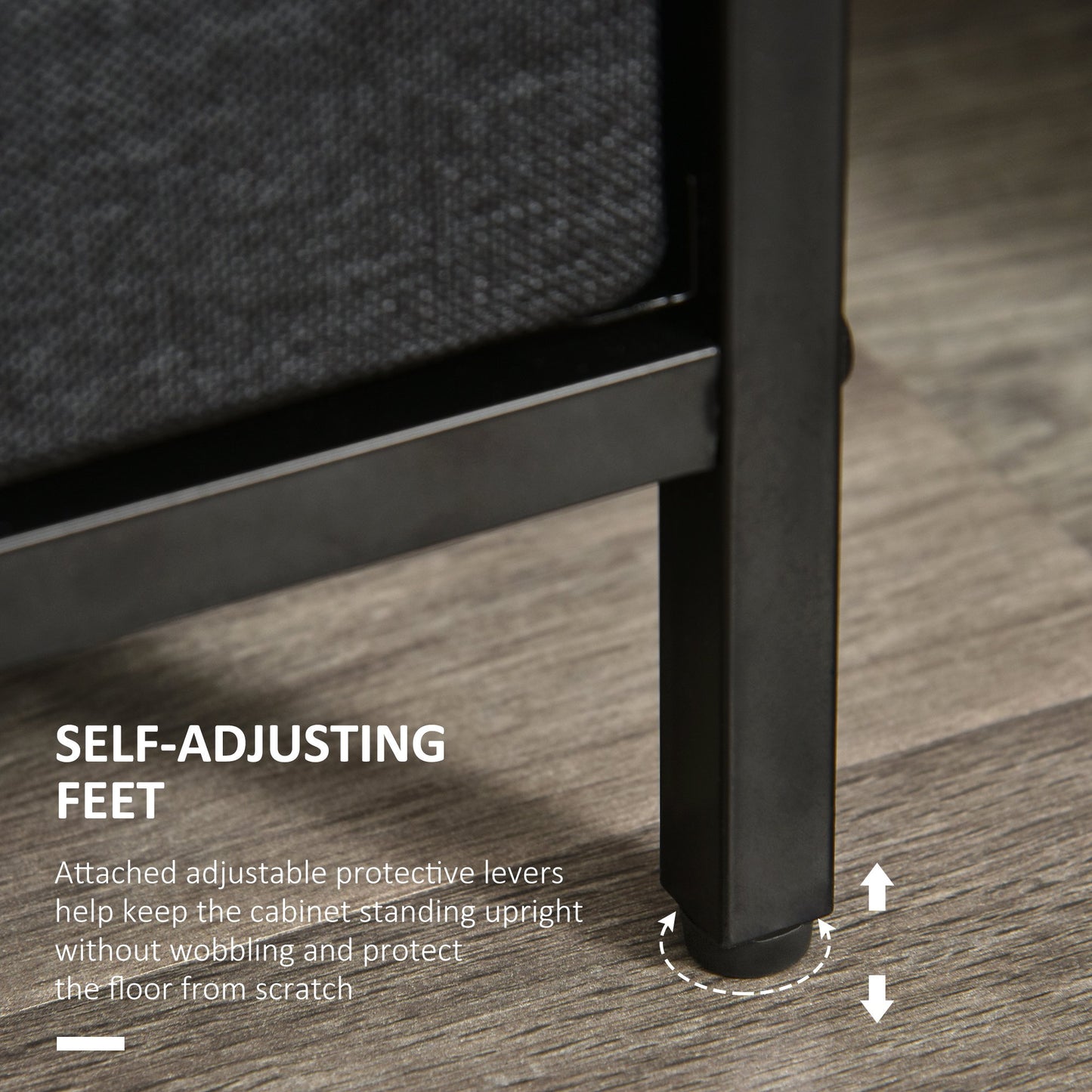 Opt for a soft approach to home storage - go for this fabric drawer unit from HOMCOM. Comes with two large and two small drawers, with two shelves on top to give you plenty of storage and display room respectively. The frame, made from metal, ensures a sturdy core structure, with adjustable bottom feet to keep the balance at all times. Finished with wood-effect handles on the drawers to open and close them easily.