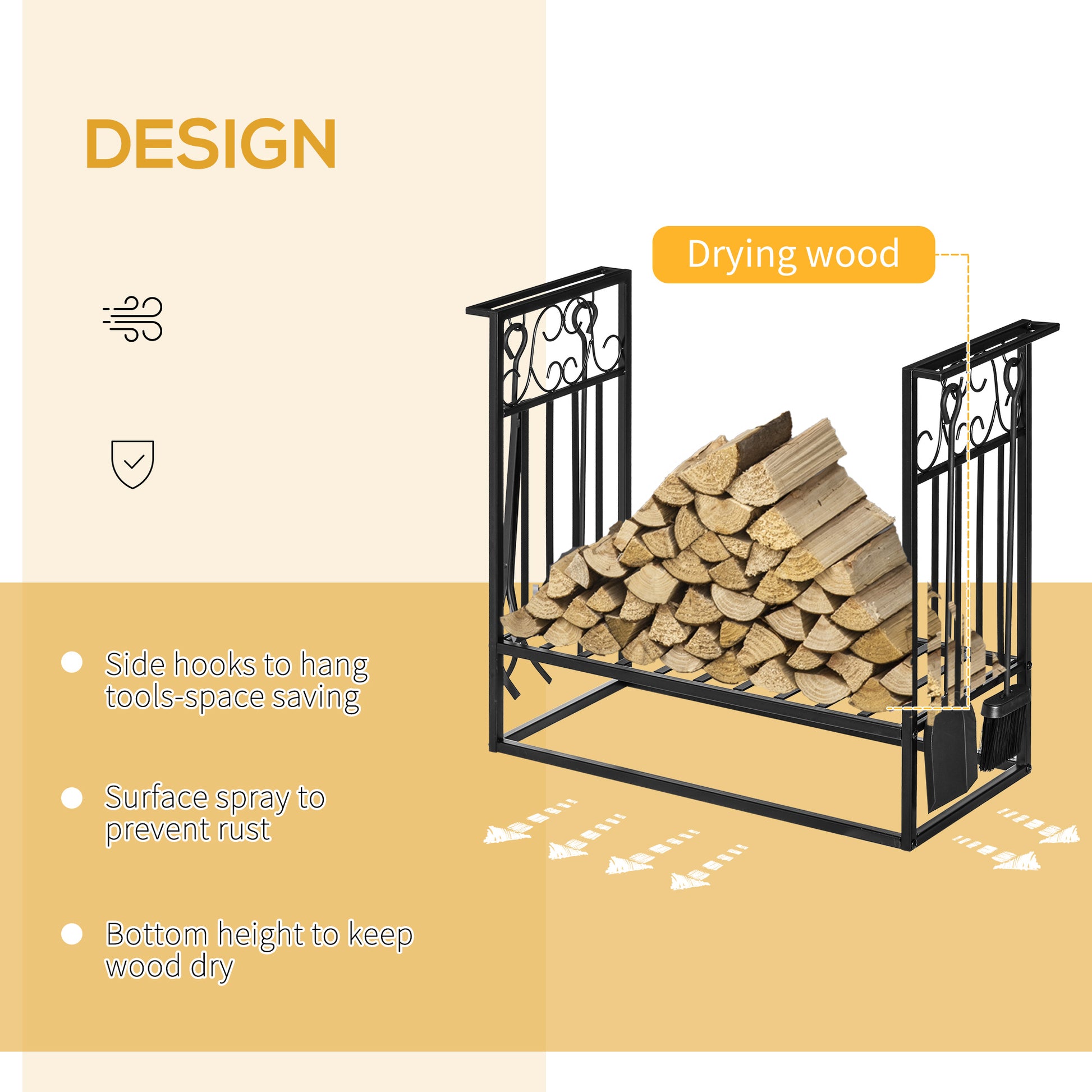 • Elevated base to keep the wood logs dry
