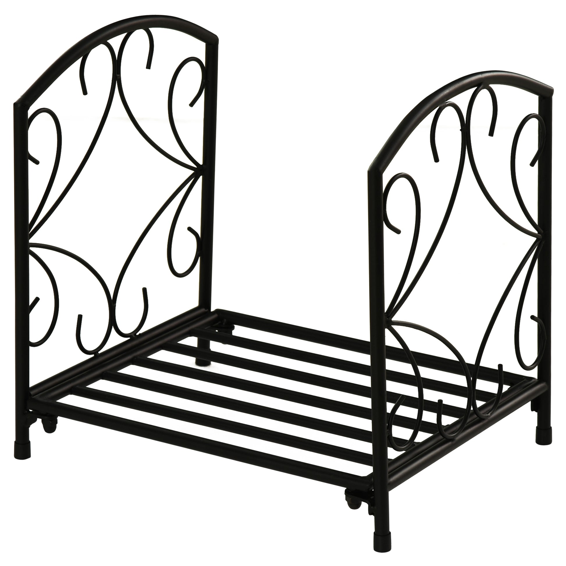 Keep wood for cosy winter fires in a handy place - keep them in this log rack from Outsunny. Made from powder coated metal for a strong structure, it's made into an open and spacious design to hold lots of wood - up to 50kg. Bottom shelf provides support, with it's slatted design preventing water build-up. Four legs to elevate and keep your fuel aerated and dry for maximum burning efficiency. Finished with scrolls on the side for decoration.
