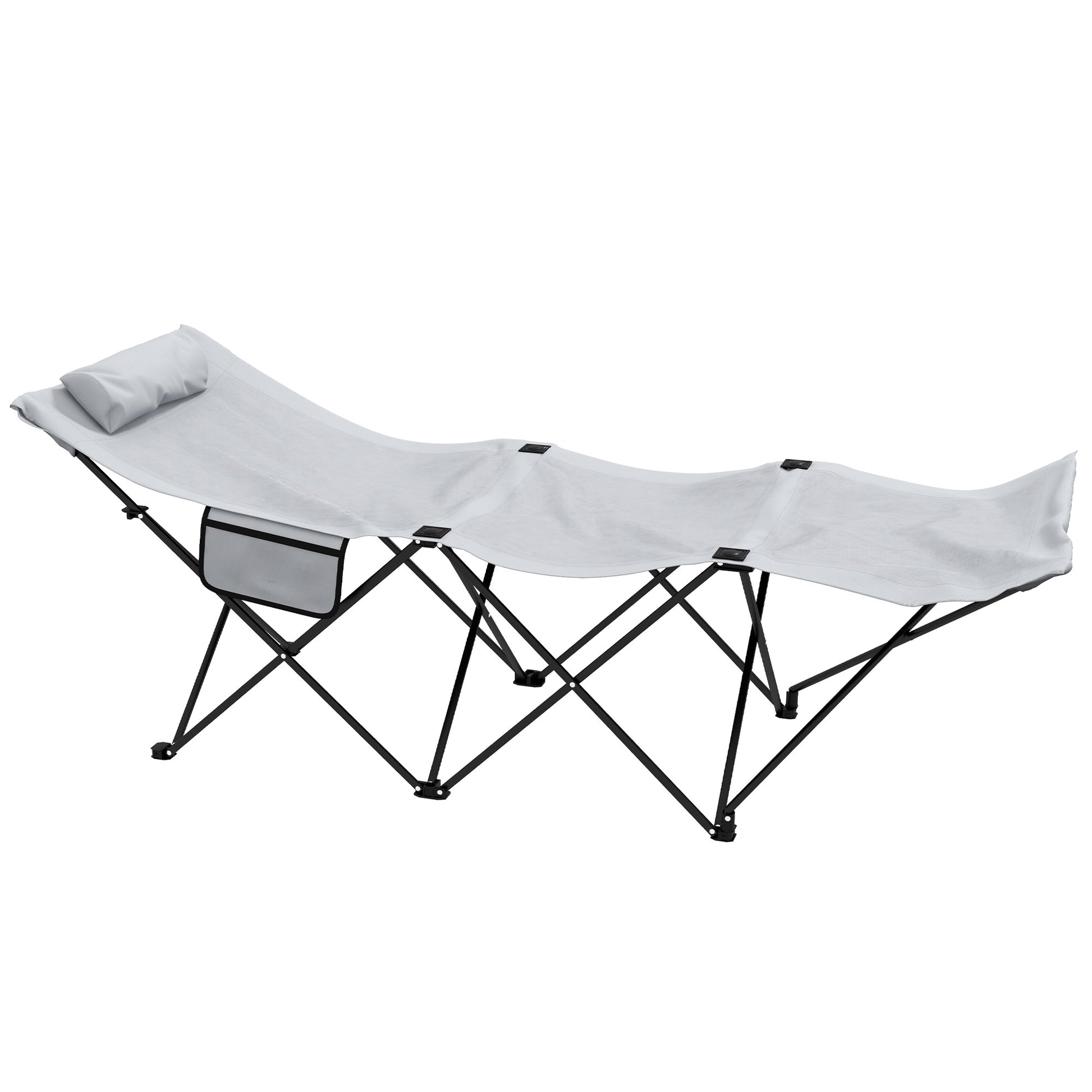 Foldable Sun Lounger, Outdoor Tanning Sun Lounger Chair with Side Pocket, Headrest, Oxford Seat, for Beach, Yard, Patio, Grey