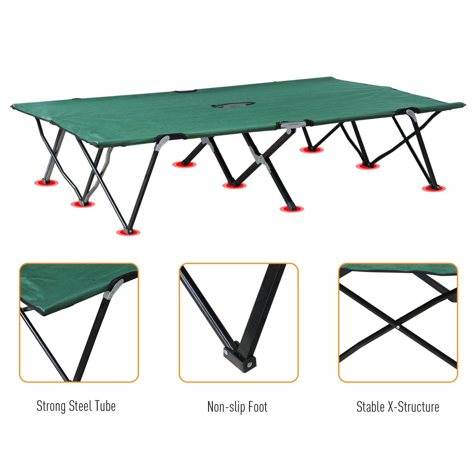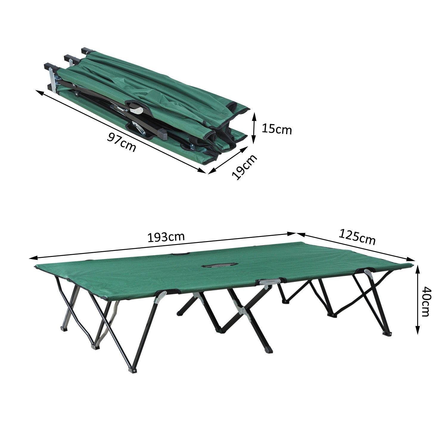 This Outsunny camping travel cot is a great addition for anyone who likes to go camping and see the outdoors. The folding system helps to make the unit compact and easy to carry. It s made from metal frame with Oxford fabrics which can hold up to 136kg. With a raised height and a length of 193cm will fit most people for a comfortable seating or sleeping. The cot comes ready to use and will be ideal for travelling.