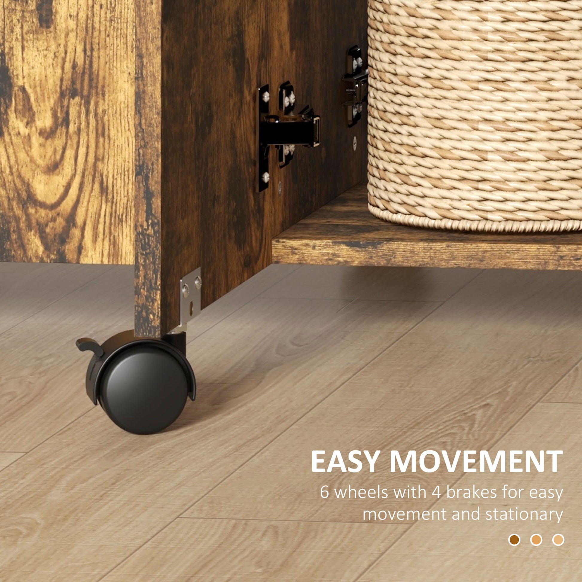 A small dining table which expands - look to this expanding drop leaf piece for more compact spaces. Both ends are fitted with lift-up tabletops - sitting between four and six people: great for when you require extra dining space. It comes with two drawers, a shelf and a cabinet which offers handy storage for kitchenware and more. Complete with six wheels to move easily (four with brakes).Specifications