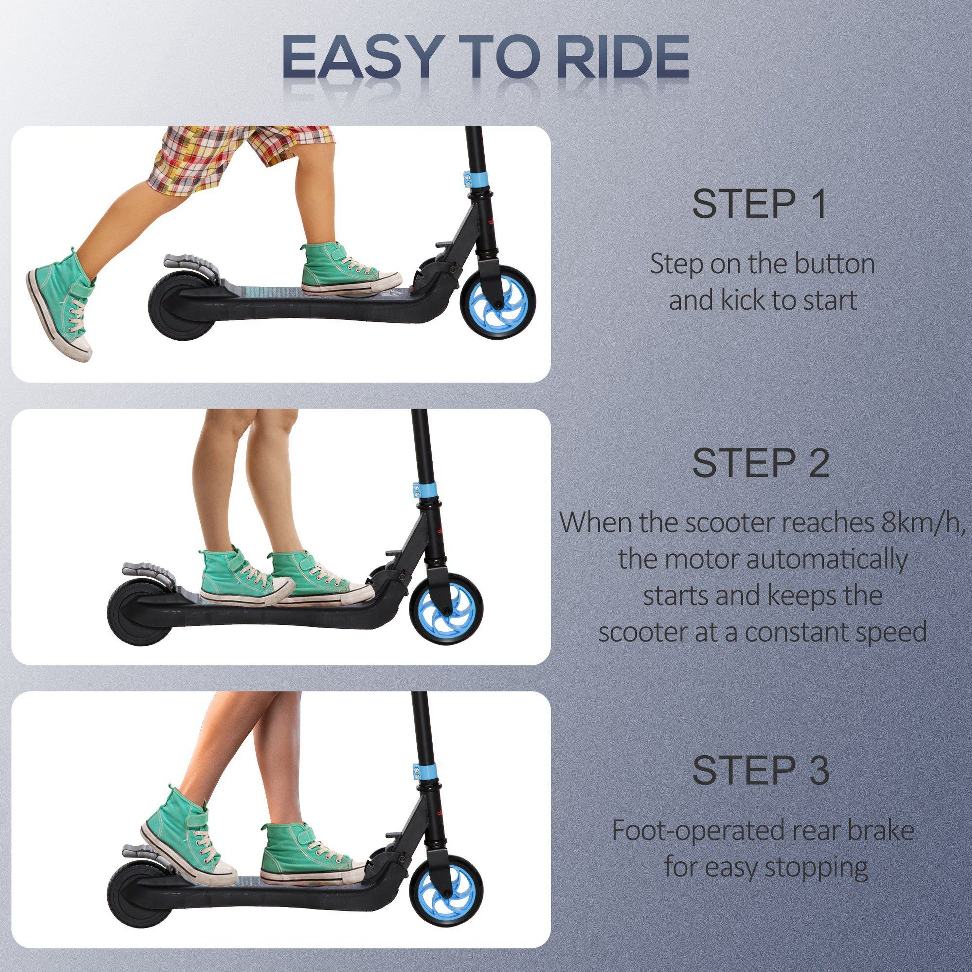 Folding Electric Scooter with Rear Wheel Brake, Sky Blue