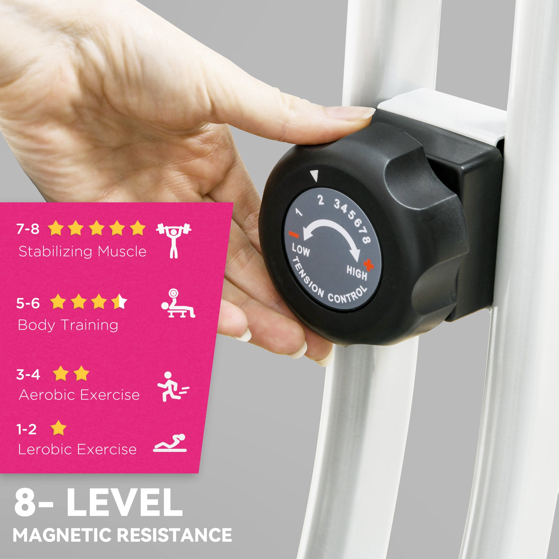 - 8-level adjustable magnetic resistance ensures smooth and silent workouts