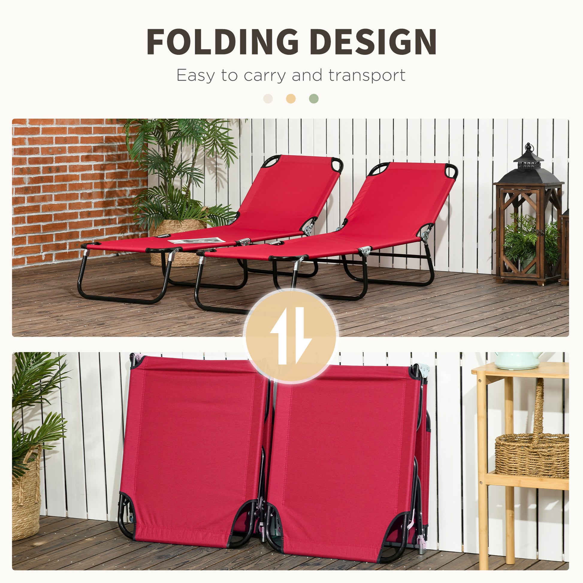 Folding Sun Loungers Set of 2 with Adjustable Backrest, Wine Red