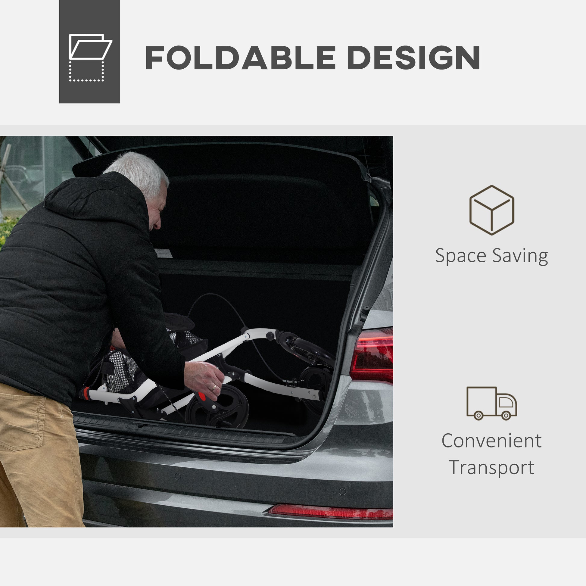 Folding Upright Rollator Walker with Storage Bag, Tray, White