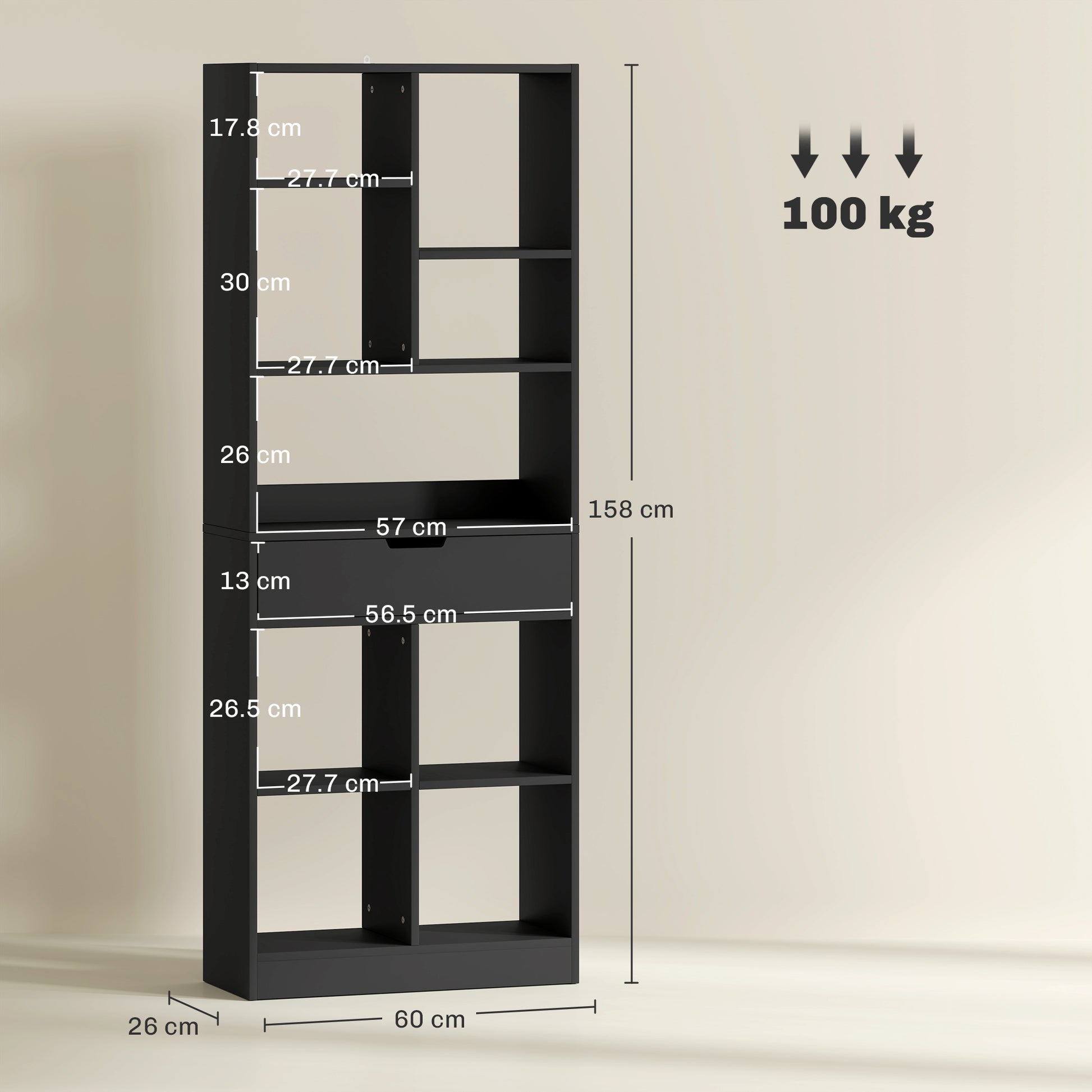Freestanding Bookcase Display Shelf with Drawer for Home Office