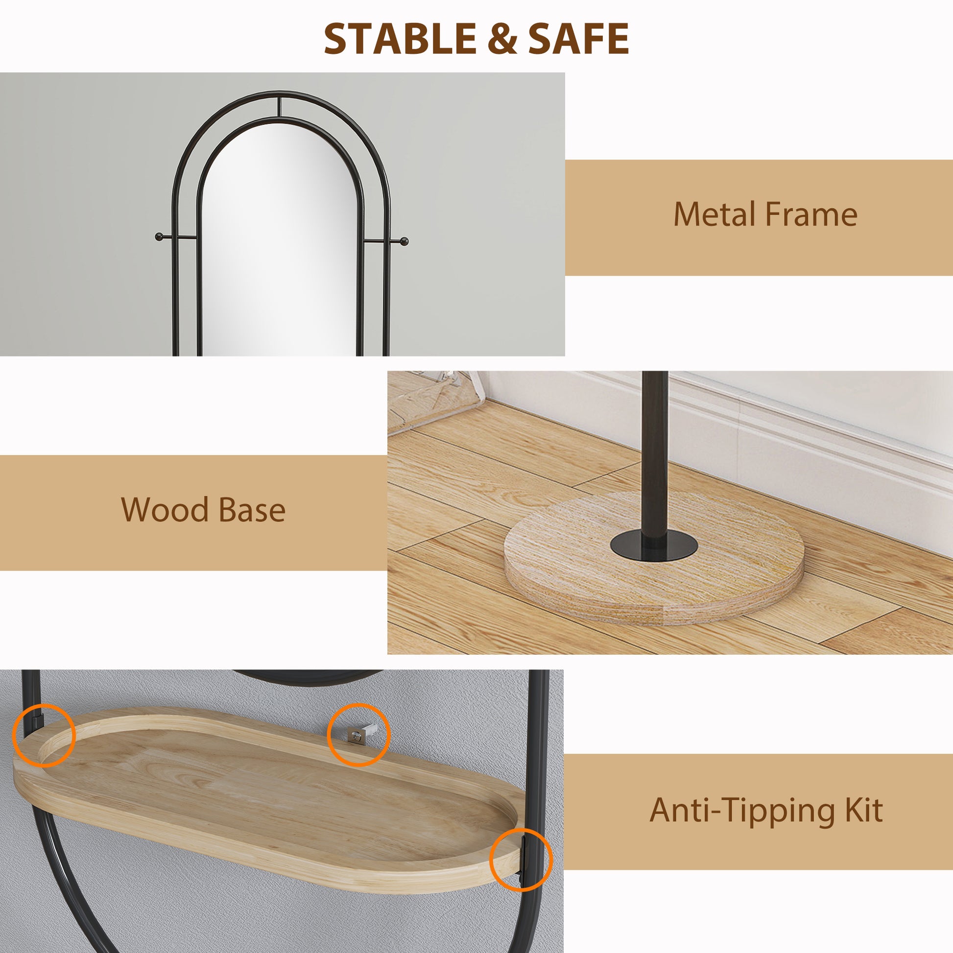Full Length Mirror, Free Standing Mirror with Tray and Hooks, Black