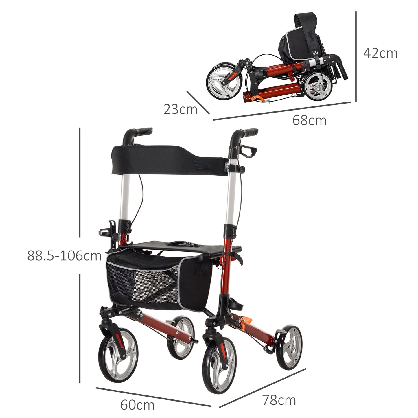 - Fully Folding Size: 42L x 23W x 68Hcm