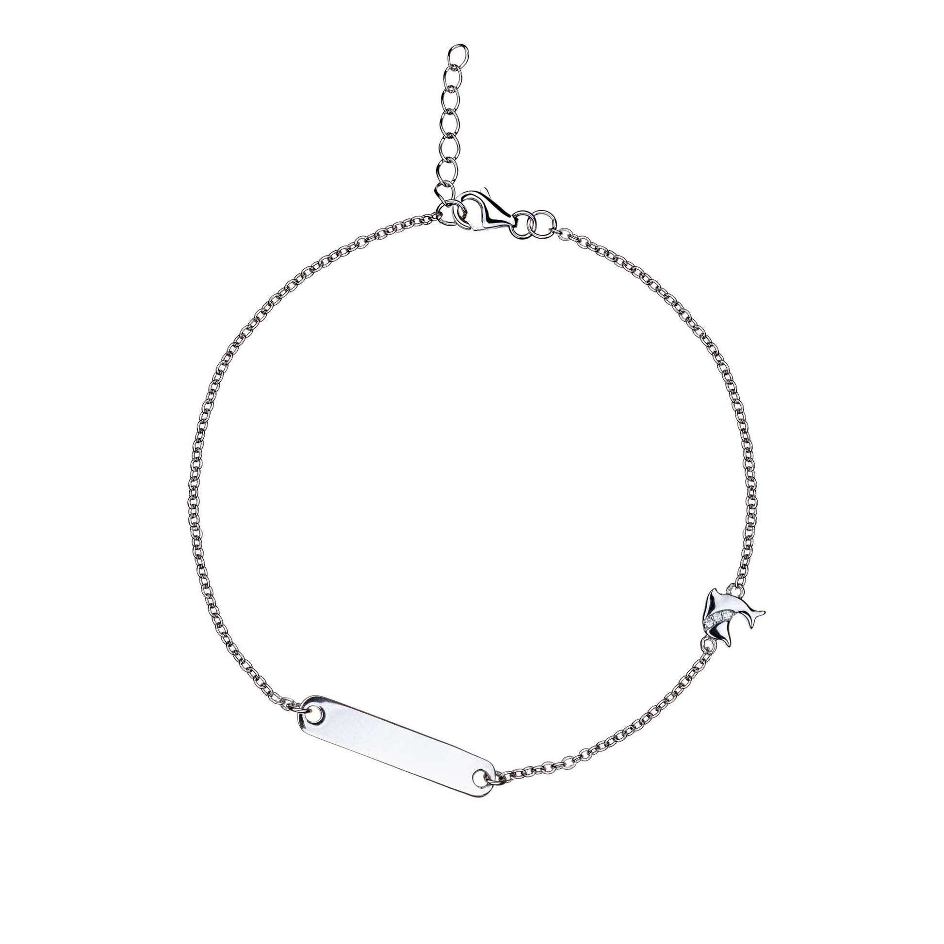 Our simply beautiful Sterling Silver I.D bracelet makes a lovely sentiment gift that has a sweet and detailed dolphin attached which hold 3 small cubic zirconia's adding sparkle. The I.D bar is 1 inch in length and 4mm in width, giving this the opportunity to be personalised with a name, hieroglyphics, letters or a date to make this an extra special gift.