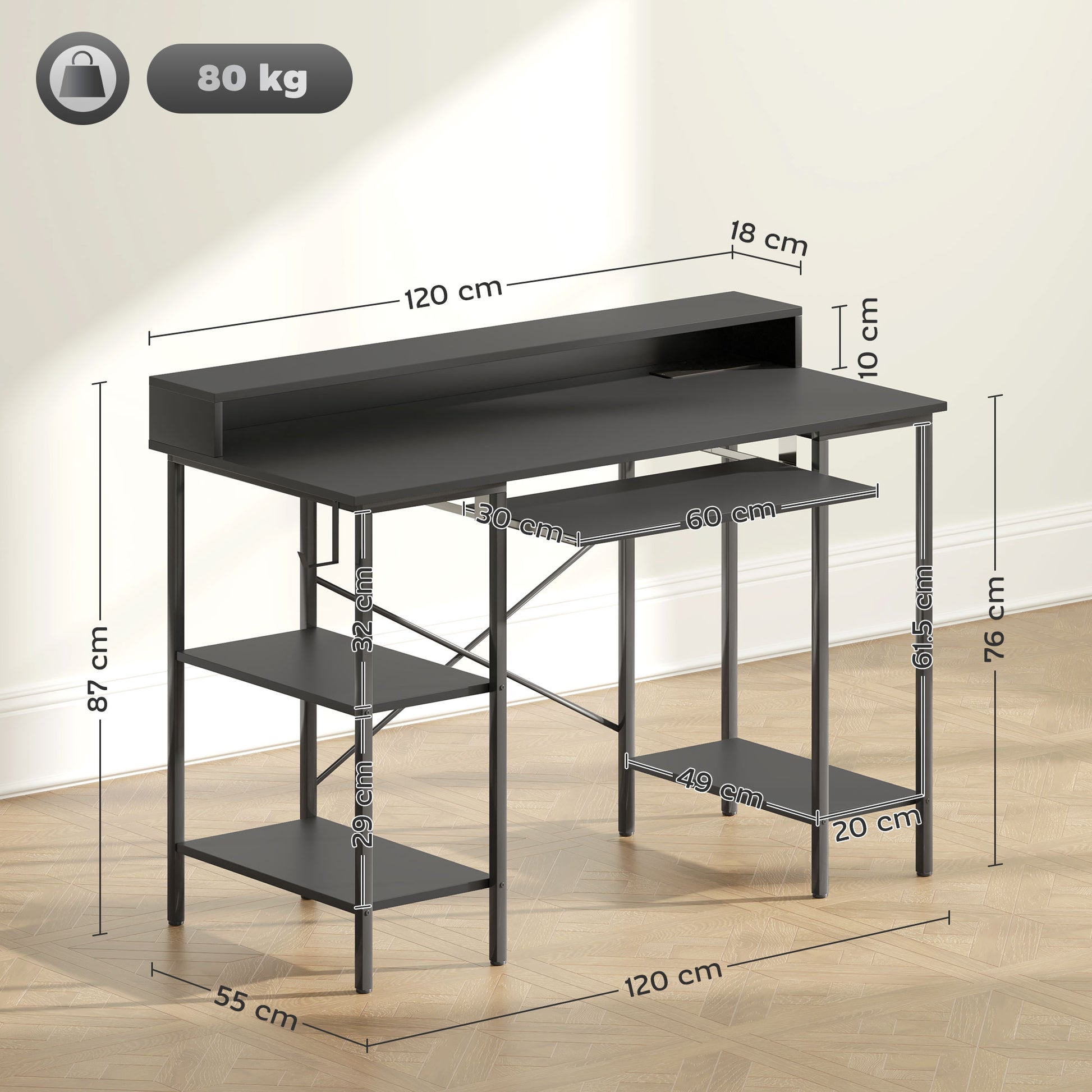 Gaming Desk with Monitor Stand and Sliding Keyboard Tray Black
