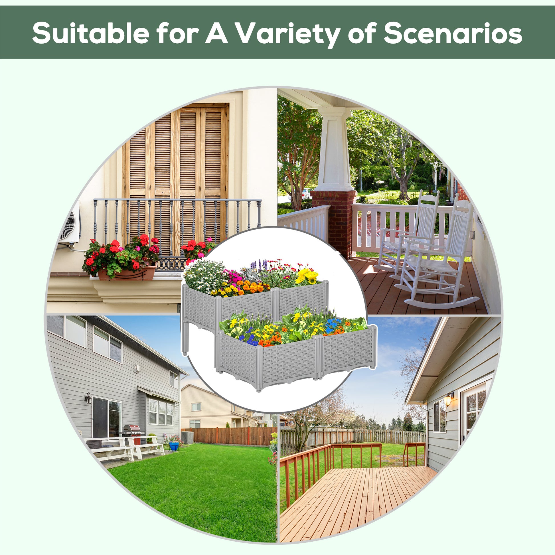 Set of 4 Garden Raised Bed Elevated Patio Flower Plant Planter Box PP Vegetables Planting Container, Grey