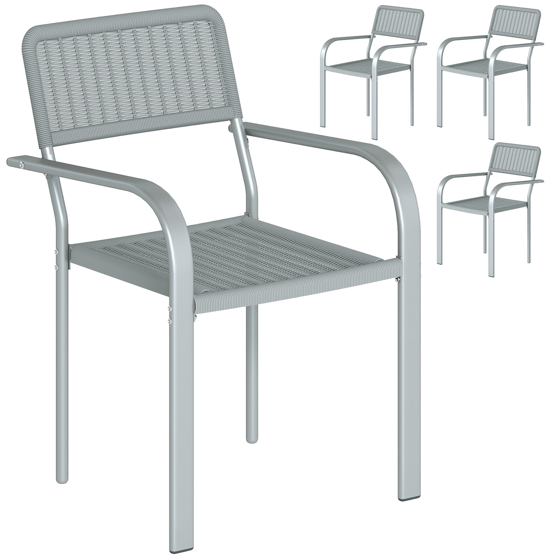Garden Chairs Set of 4, Stackable & Rattan Effect, Light Grey