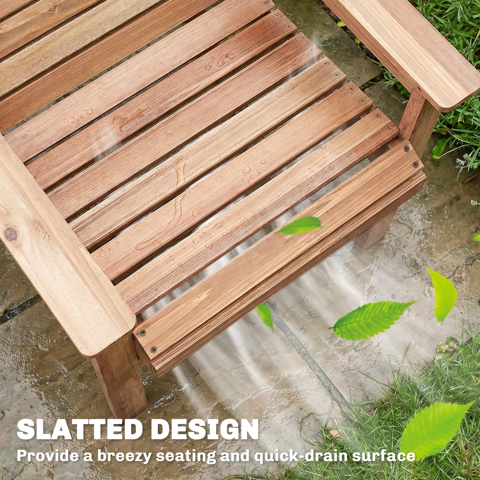 - Slatted patio table and chairs prevent water accumulation