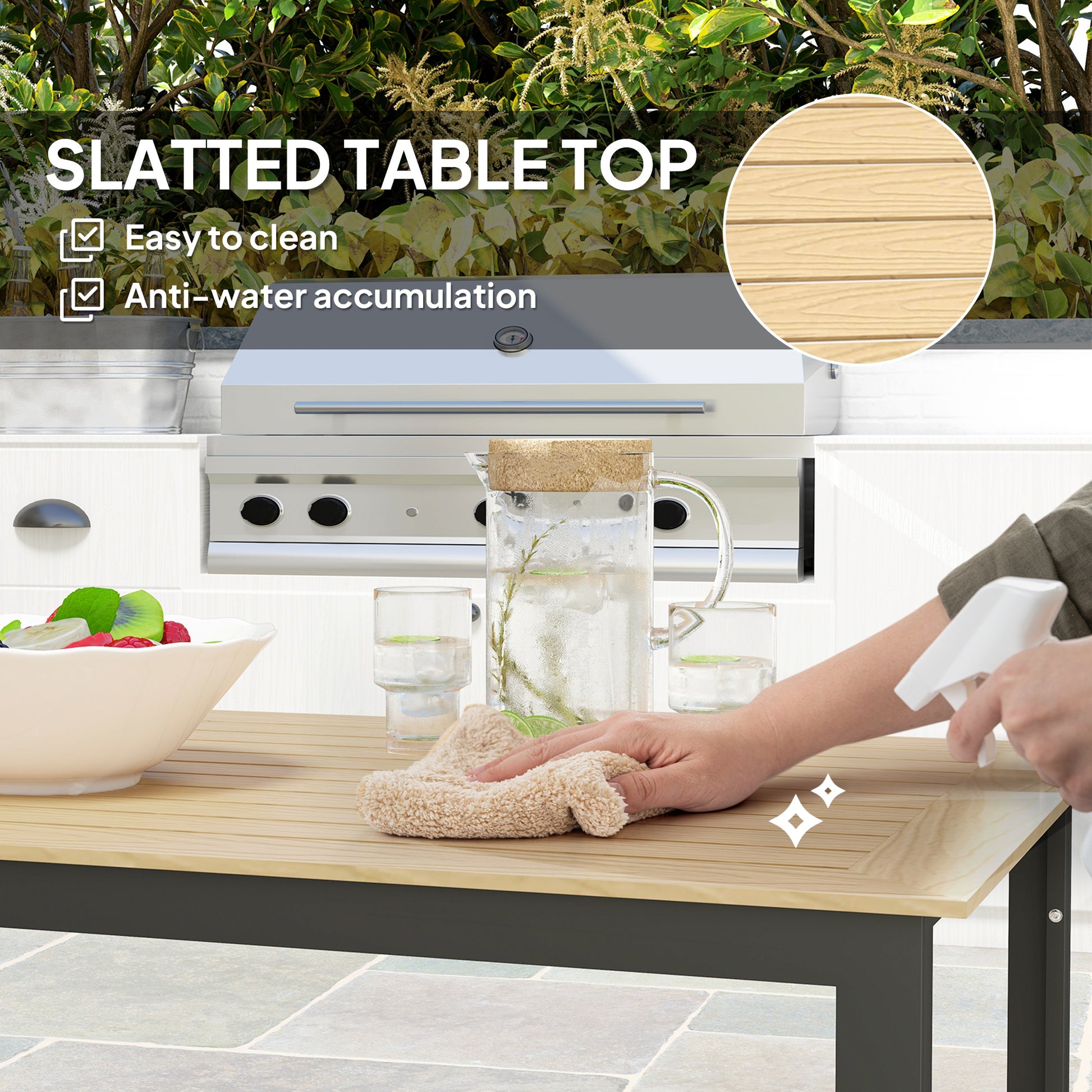 Garden Dining Table for 6 People with Slatted Table Top Metal Frame