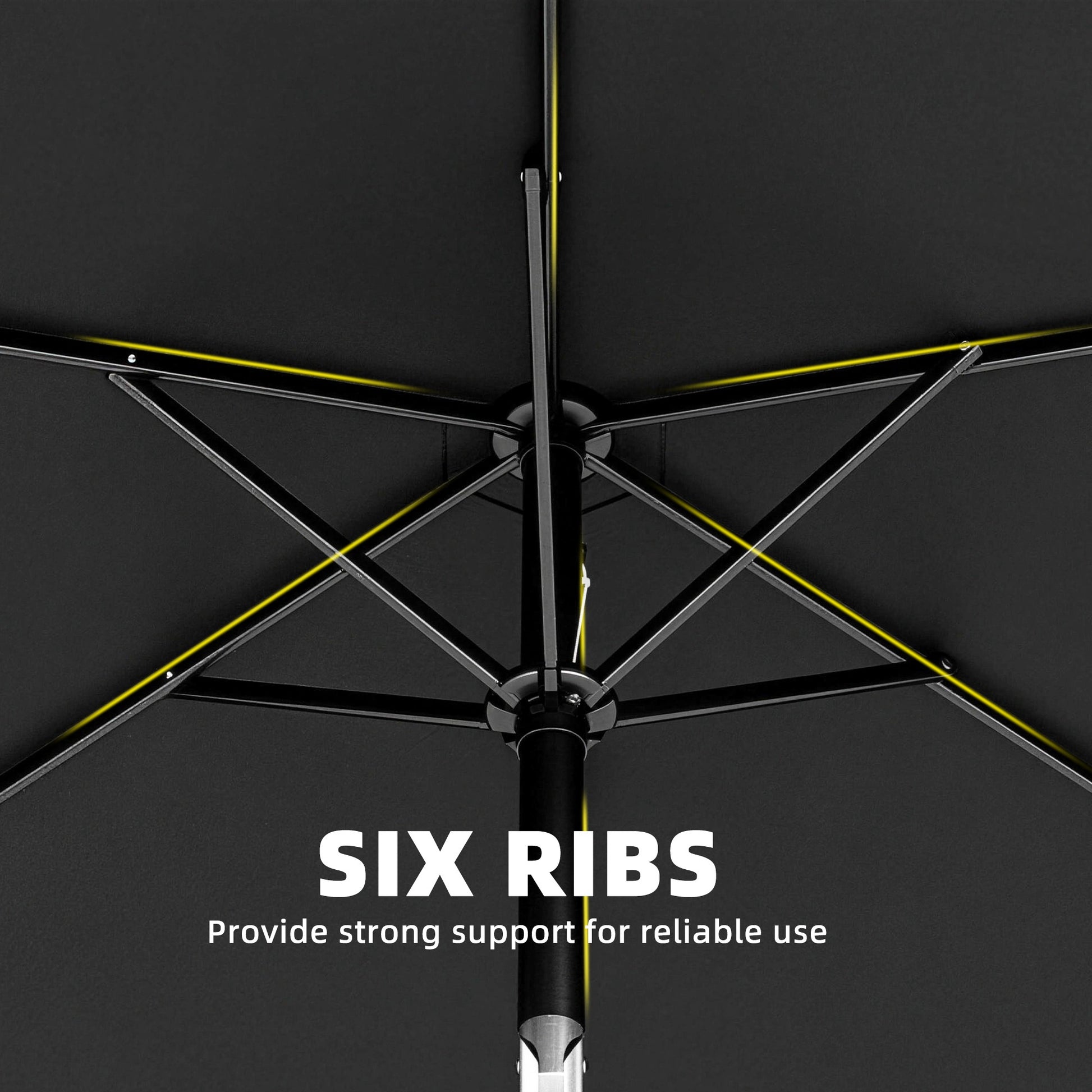 Enjoy your garden, balcony, or patio with this patio umbrella. Adjust the angle to follow the sun and create a comfortable shaded area all day. The robust metal frame with six ribs ensures stability, while the PU-coated polyester canopy offers UV30+ protection and water repellency. This tilt parasol is suitable for relaxing, dining, or entertaining outdoors in comfort and style.Specifications