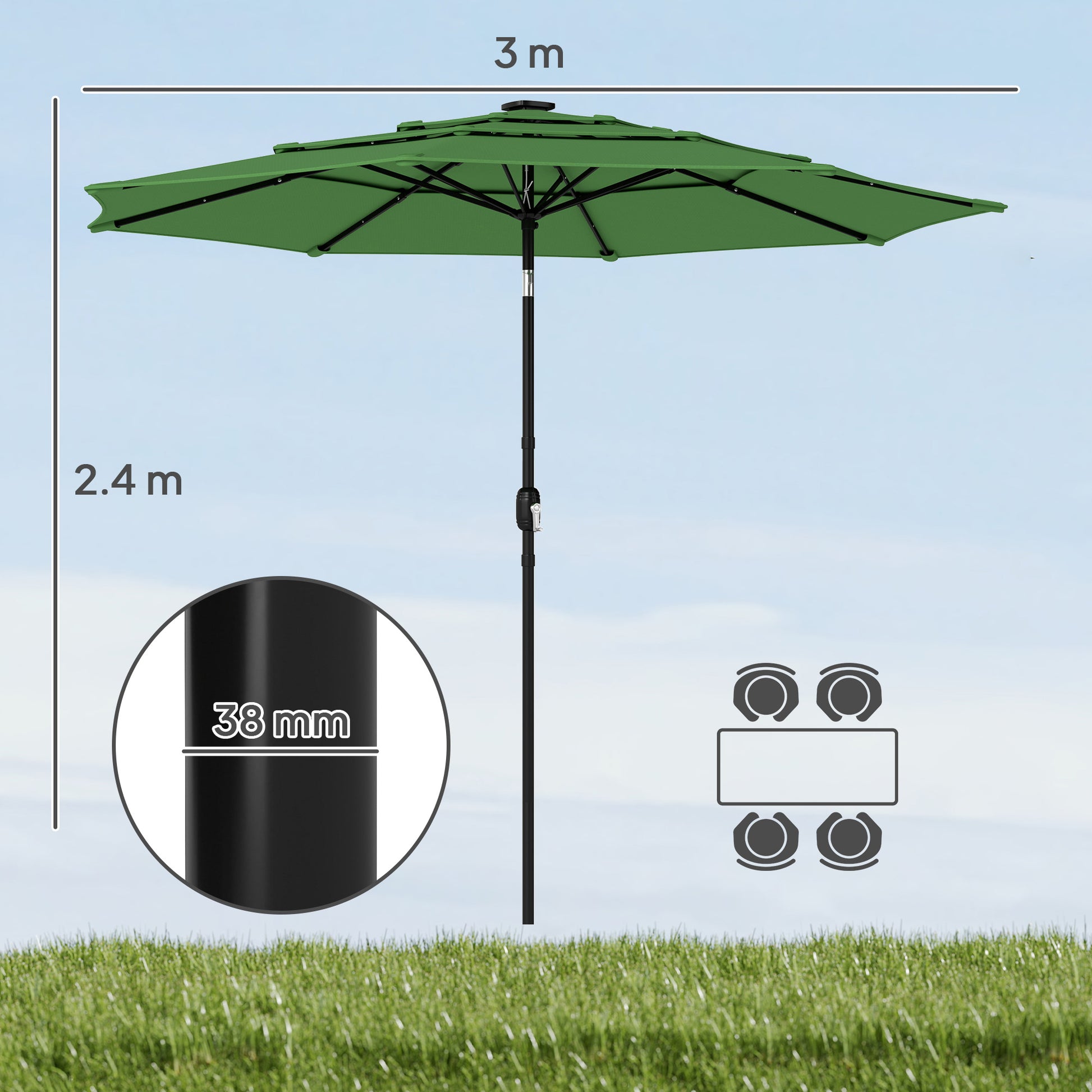 Stay cool and stylish with the garden parasol! Effortlessly track the sun using the adjustable tilt mechanism for all-day shade. Its chic three-tier roof not only looks great but also boosts airflow, keeping you comfortable while resisting fading under the sun. Built with a robust metal frame, this patio umbrella offers lasting outdoor charm. Great for sunny days, it's your go-to for relaxing in the garden or on the patio!Specifications