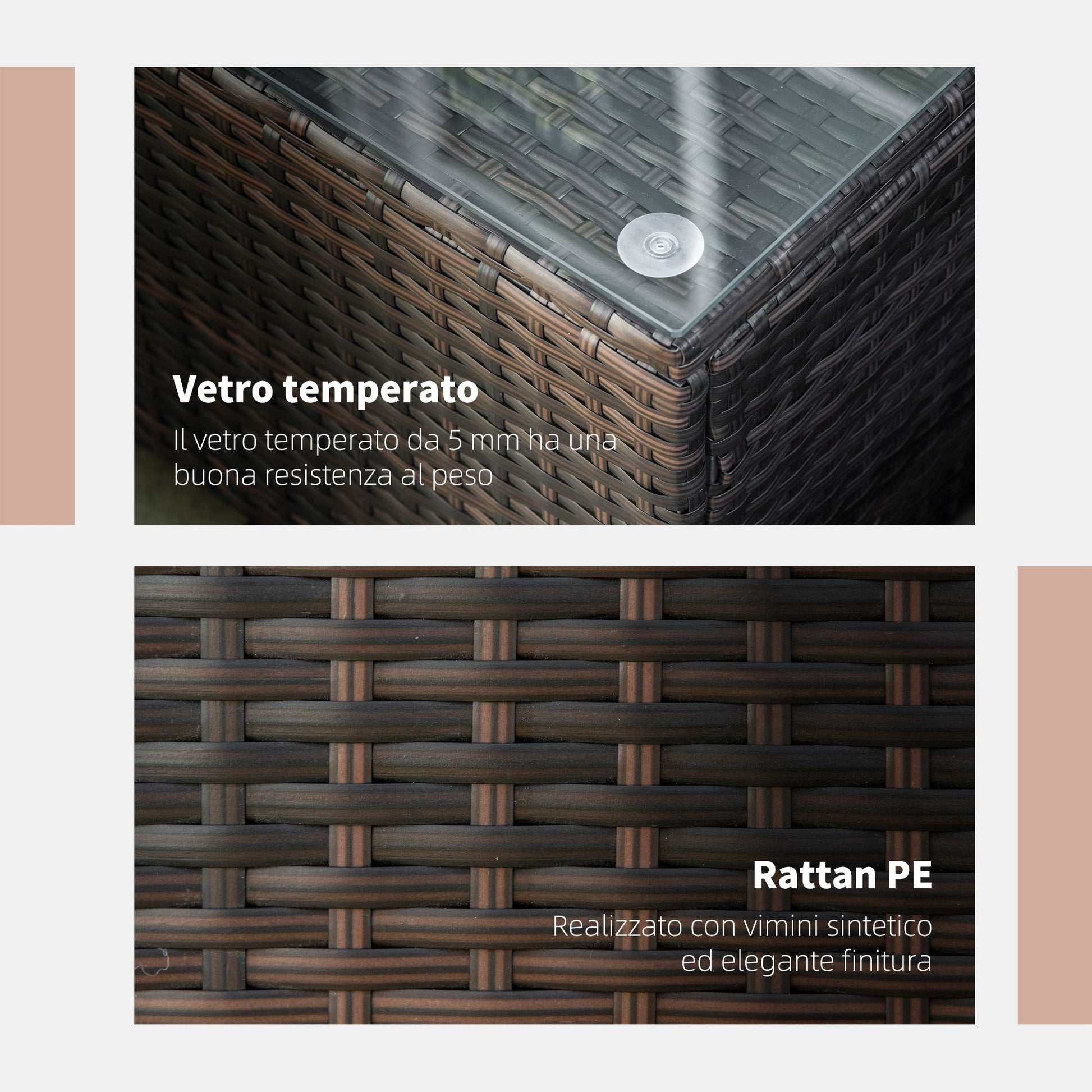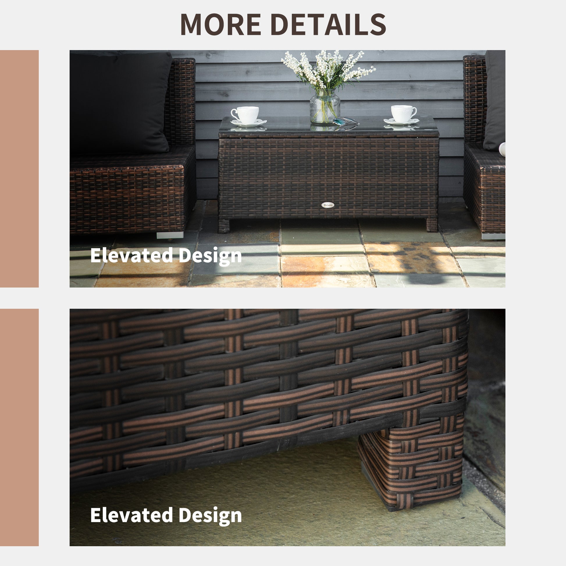 Bring classic garden style into your garden with this rattan coffee tale from Outsunny. Using metal for a frame that is tough and stable, it is crafted into a large design. It is great when you don’t want to move from your coveted spot to relax outdoors. Wrapped over the frame is PE wicker rattan – a unique colourway that oozes style. Resistant to mild weather damage, it helps prolong the lifespan of the table, with a tempered glass top on the table for a sophisticated finish.Specifications