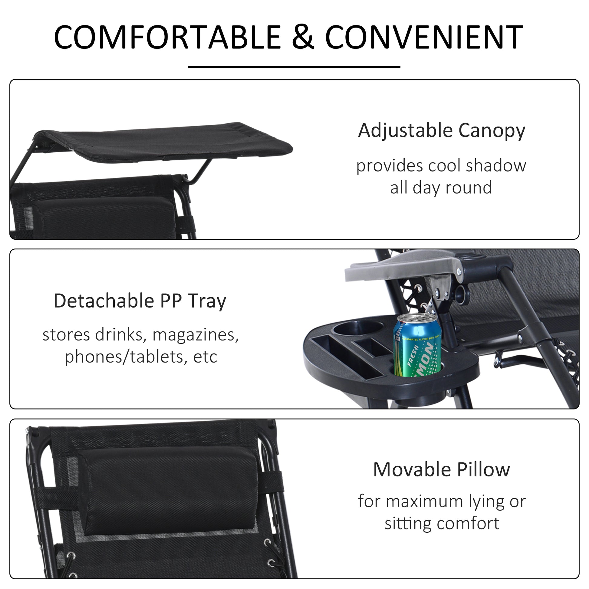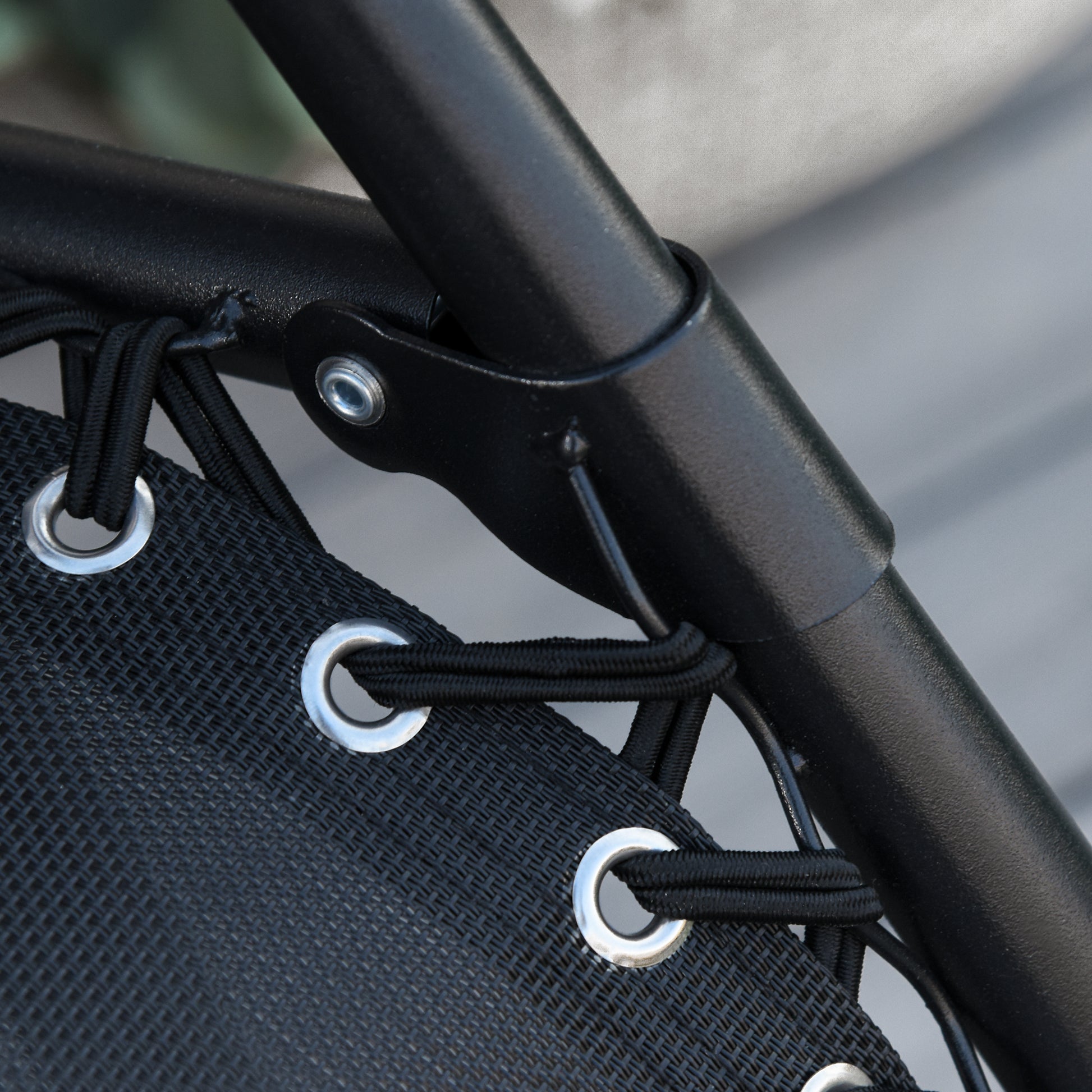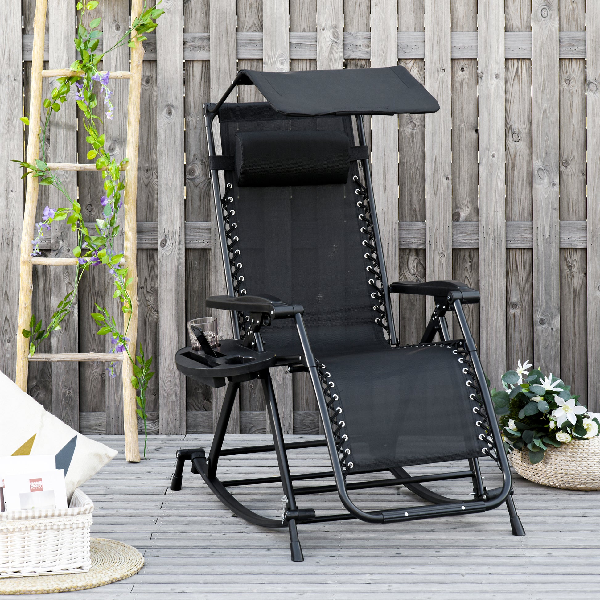 Garden Rocking Chair Folding Recliner Outdoor Adjustable Sun Lounger Rocker Zero-Gravity Seat with Headrest Side Holder Patio Deck - Black