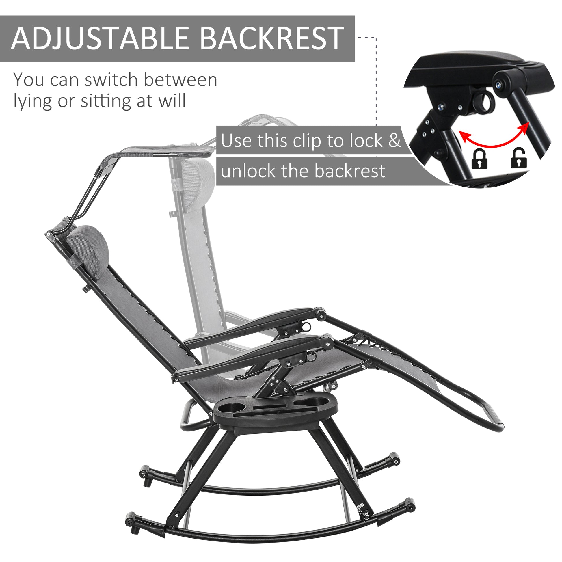Garden Rocking Chair Folding Recliner Outdoor Adjustable Sun Lounger Rocker Zero-Gravity Seat with Headrest Side Holder Patio Deck - Grey