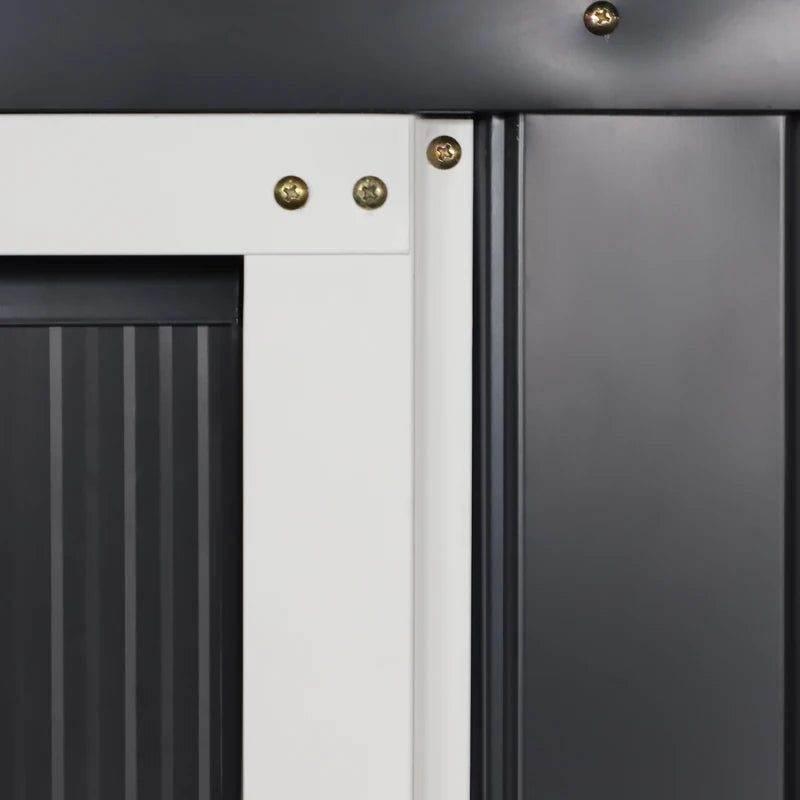 Keep your garden equipment and outdoor essentials locked away securely with metal garden sheds with base. It's made from colour steel for enduring reliability. With a sloped roof sitting on the top to help prevent water stagnating and rust forming, this motorbike shed is finished with a protective weather coating and floor foundation so you have everything you need to install this large garden shed when it arrives. The perfect home for all your outdoor tools and gear.