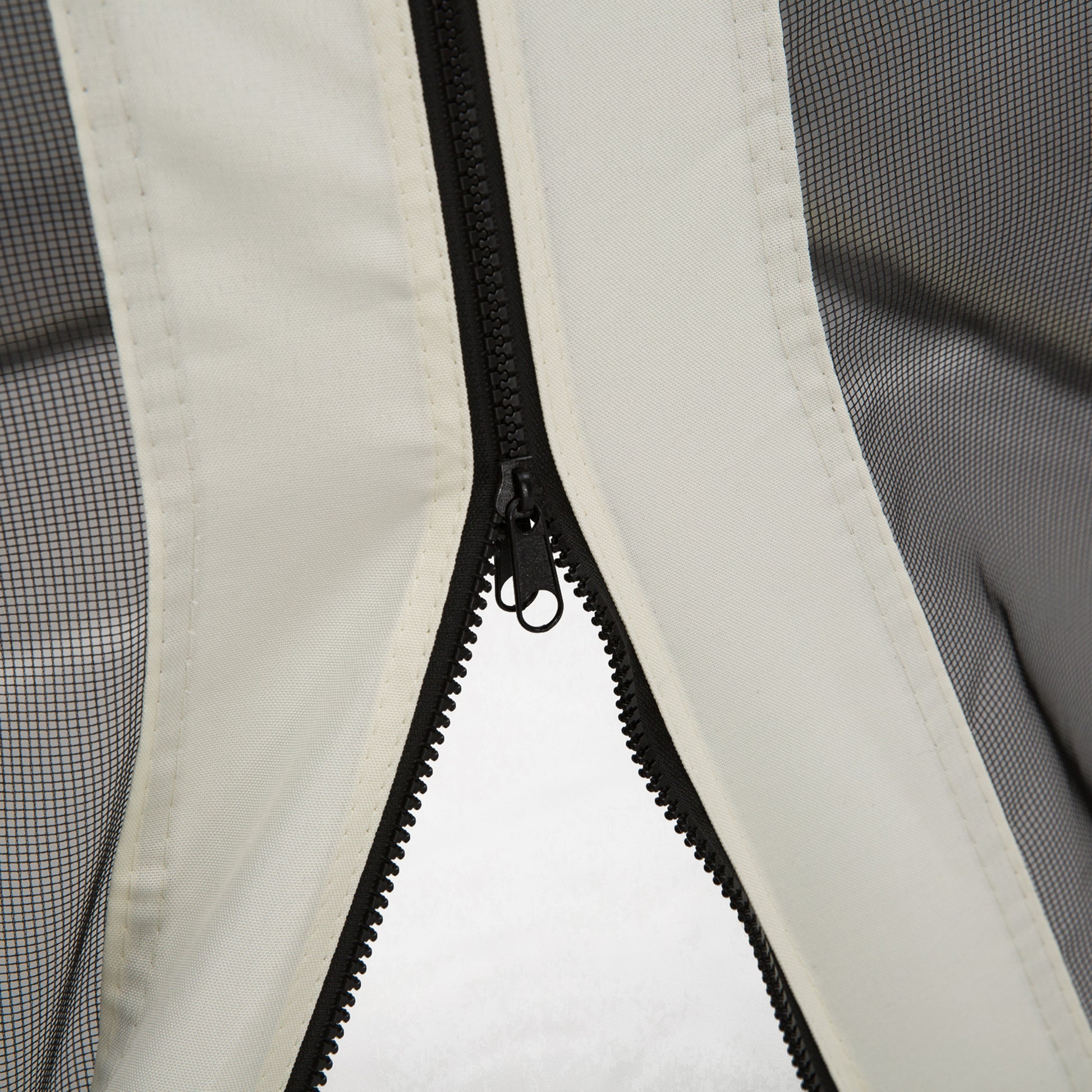 Have a patio gazebo, but your old mesh netting tore or got damaged? Good news, Outsunny has a universal replacement patio mesh netting that fits most 10' x 10' models. Made of outdoor-ready polyester fabric, the canopy netting will keep your outdoor space clear of unwanted intruders, leaves, and debris. Featuring four panels and included rings, this patio netting screen is as easy to put on as a shower curtain. Don't let winged fiends crash your party space; keep a backup just in case.